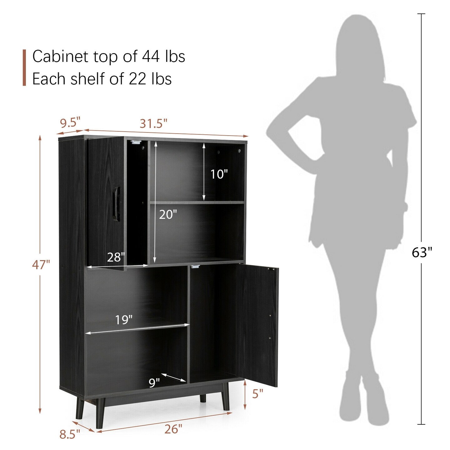 4-tier Accent Sideboard Storage Cabinet with 2 Storage Doors and 4 Open Shelves