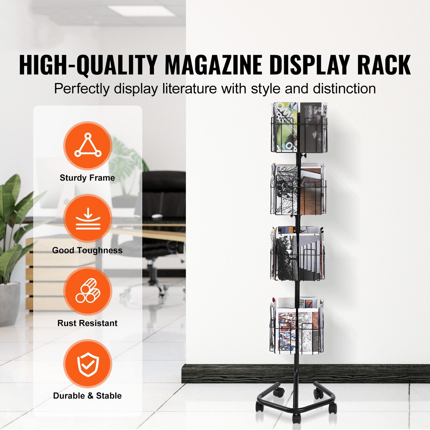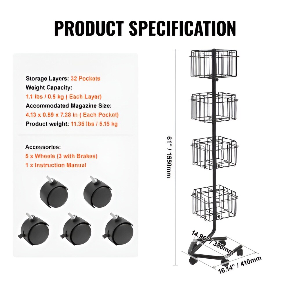 4-Tier Brochure Display Rack 32 Pockets Spinning Greeting Cards Stand