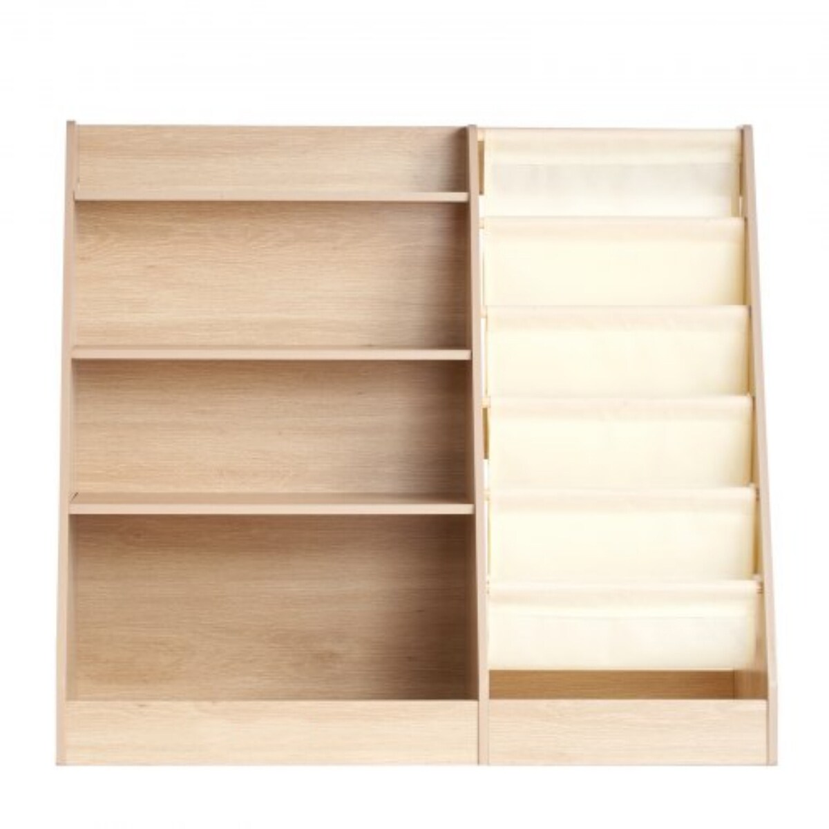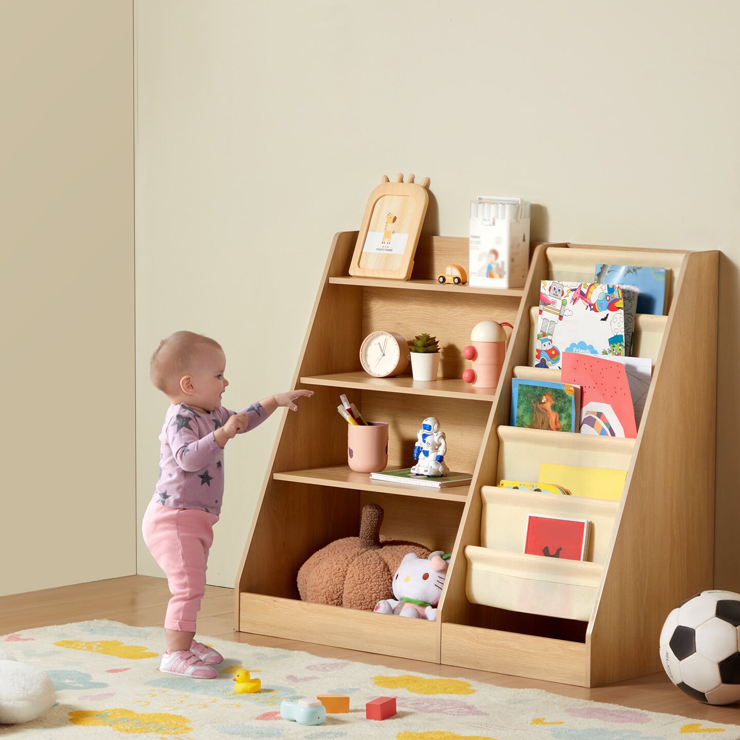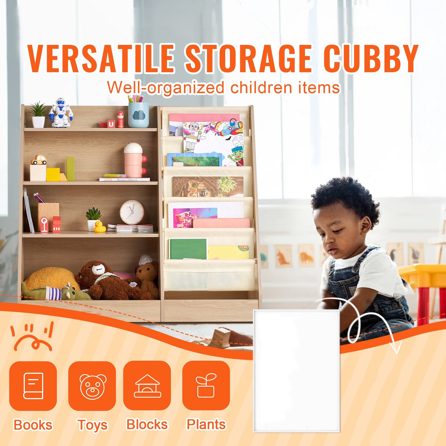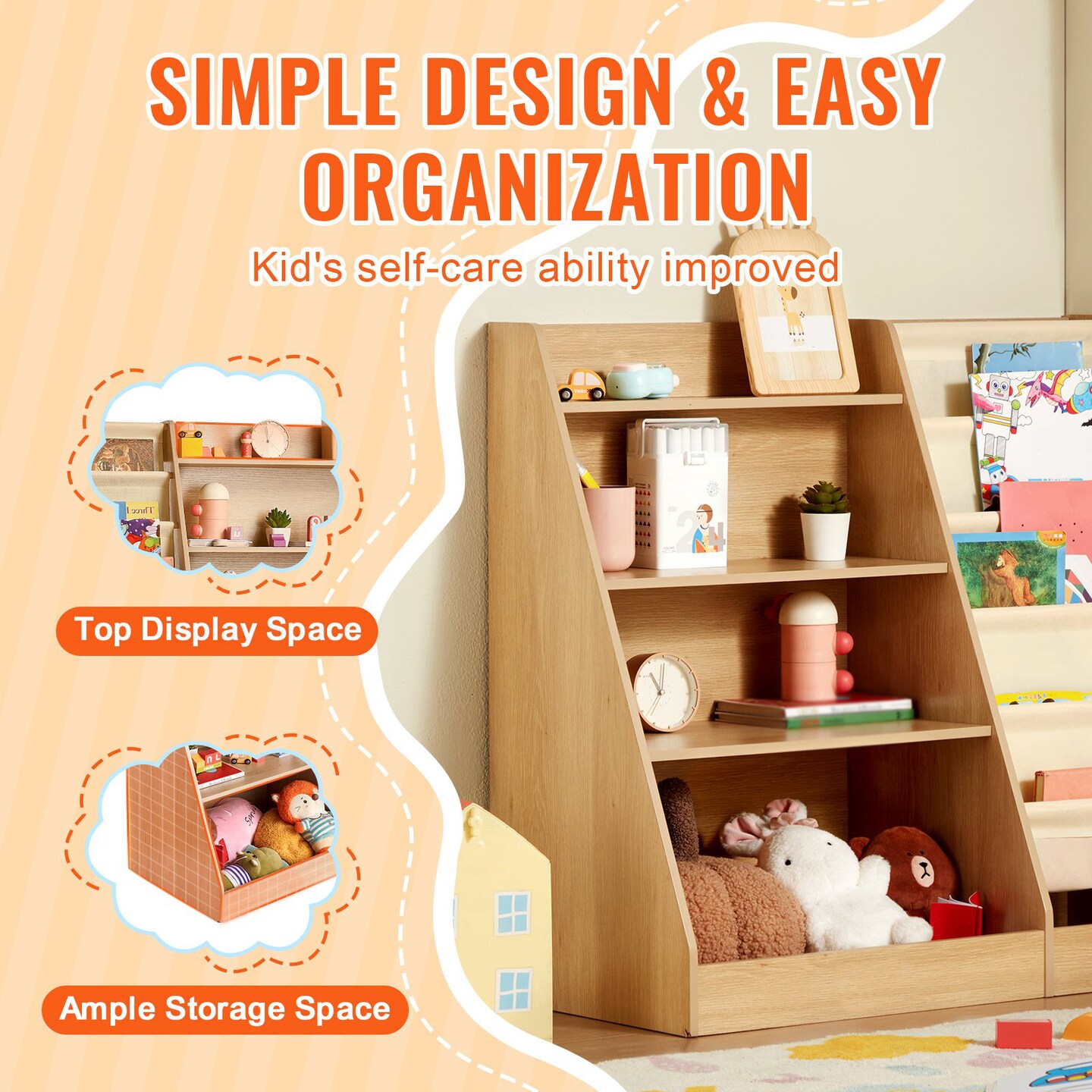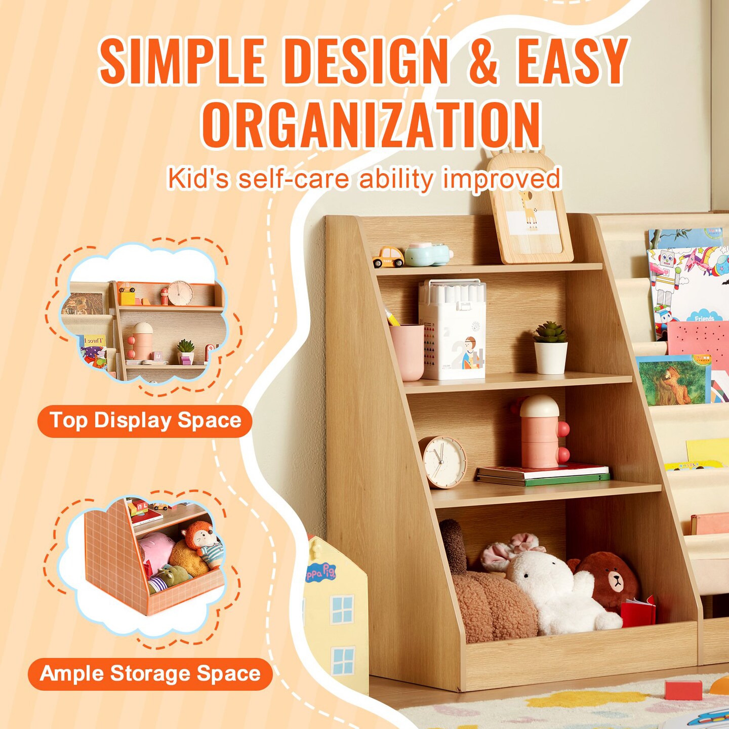 4-Tier Kids Wooden Bookshelf, Sling Bookcase Organizer
