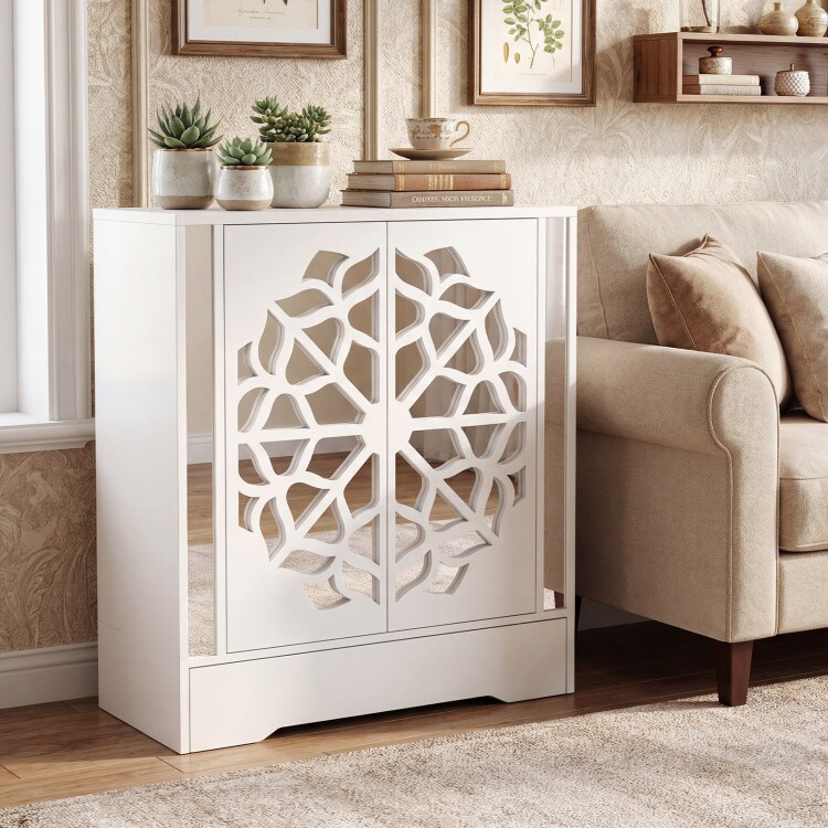 4-Tier Mirrored Shoe Organizer Cabinet With Large Drawer Entryway Storage