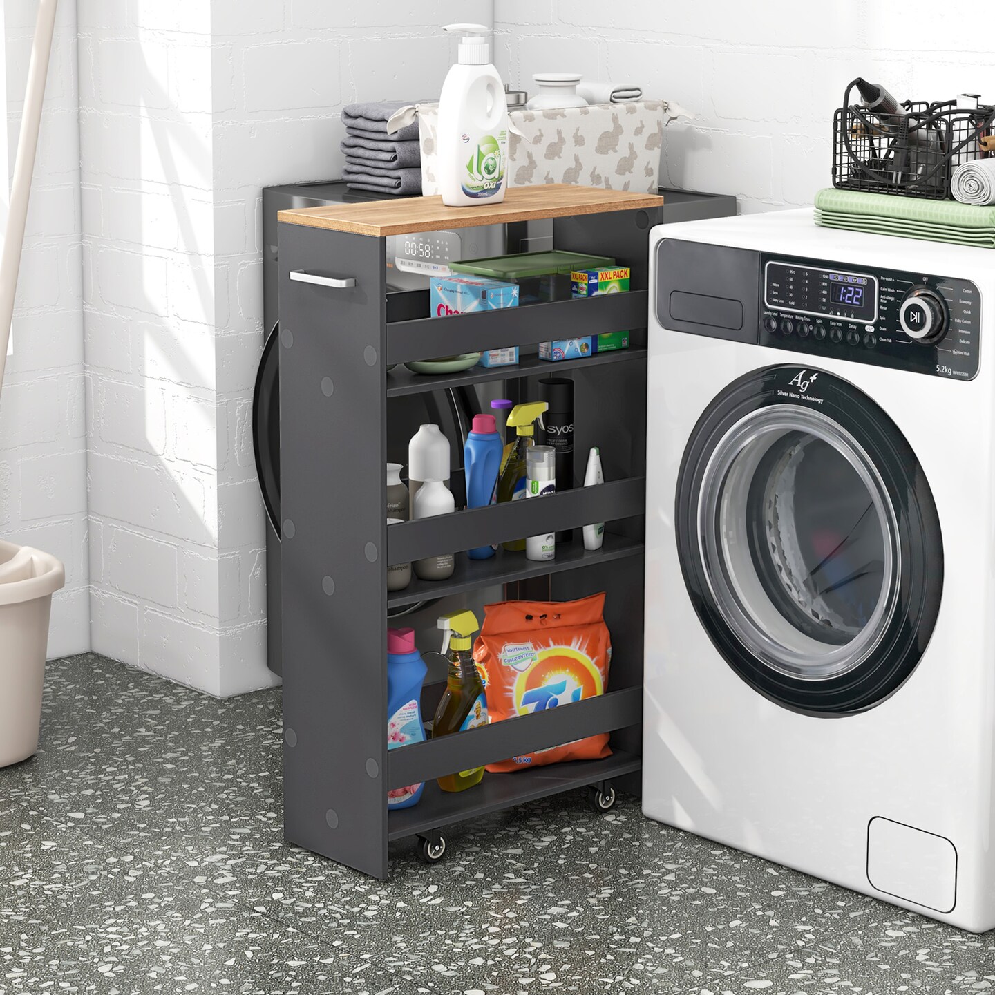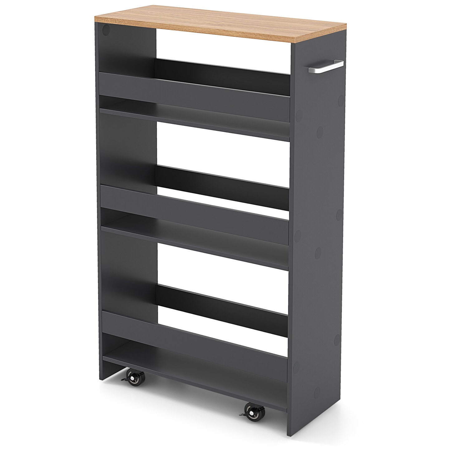 4-Tier Rolling Storage Cart Slim Kitchen Cart on Wheels with Open Shelves and Handle