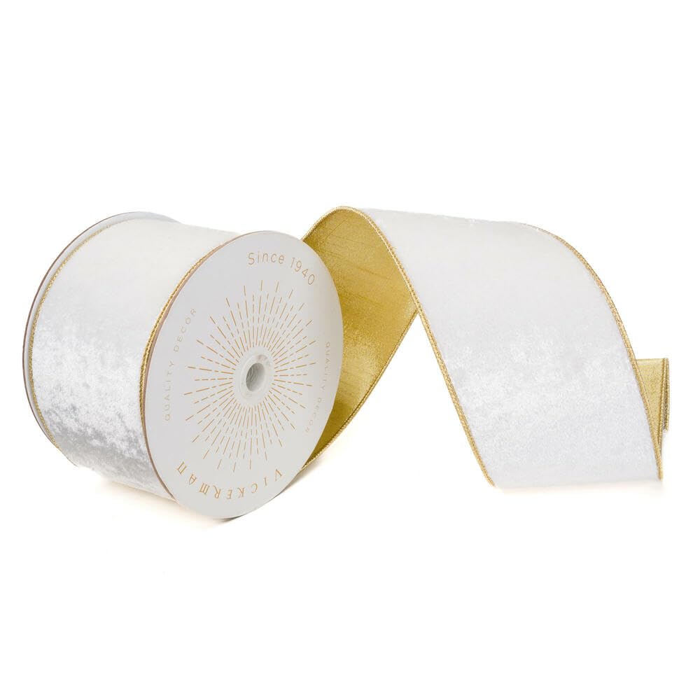 4"x10yd Ivory Shiny Velvet Gold Trim
