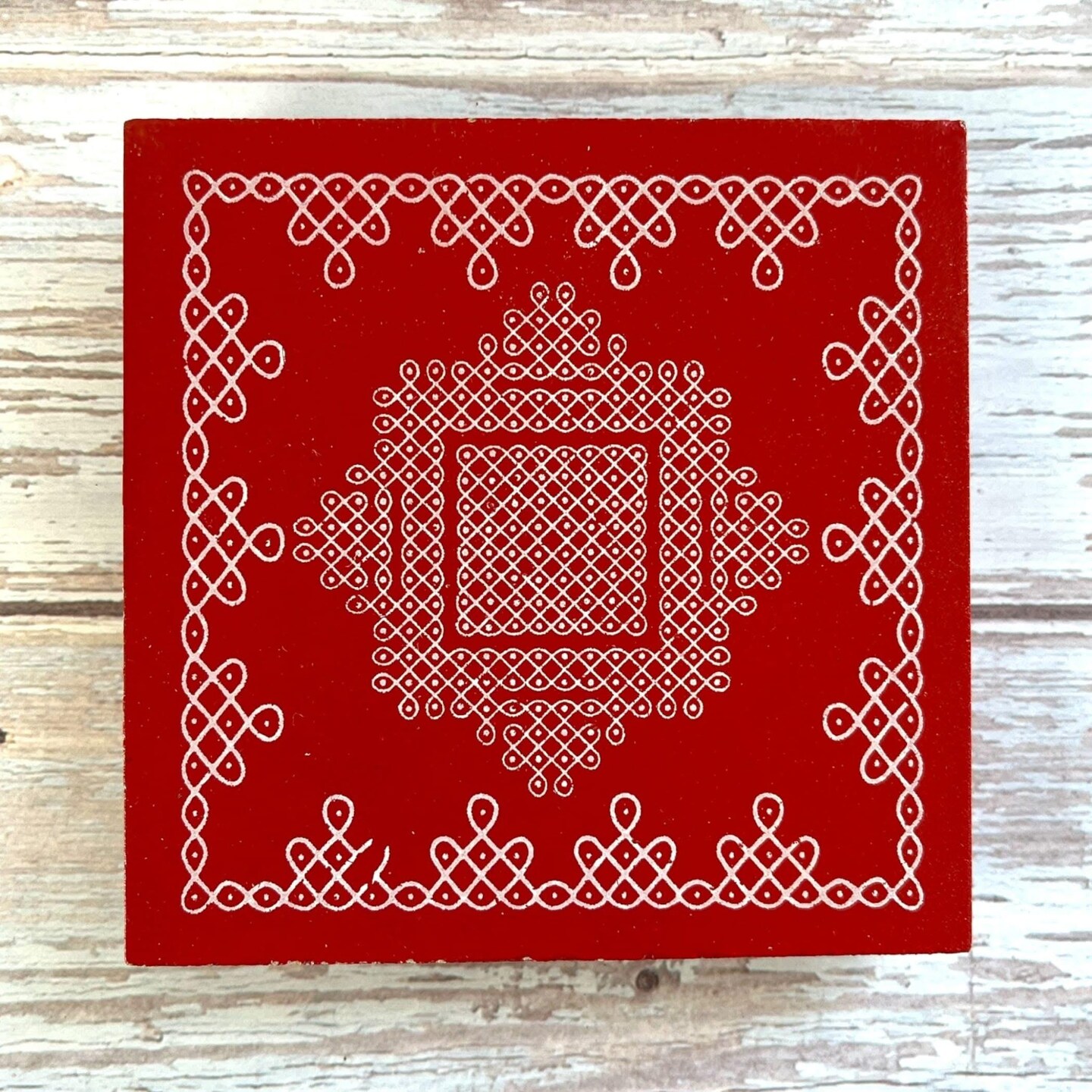 4x4 Inch Wooden Puja Chowki Handcrafted Floral Printed Traditional Chaurang Chowki for God Idols Kalash - Festive Decor for Pooja Home Temple Mandir - Diwali Housewarming Gift