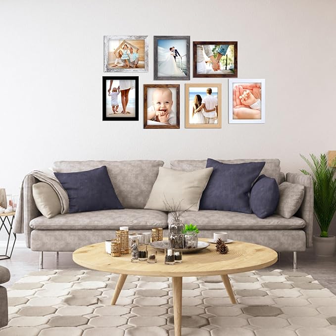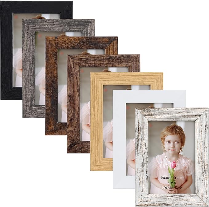 4x6 Frame Set of 7, 4x6 Picture Frame in Multi Colors, Rustic Wooden Frames for Tabletop and Wall Mounting Display