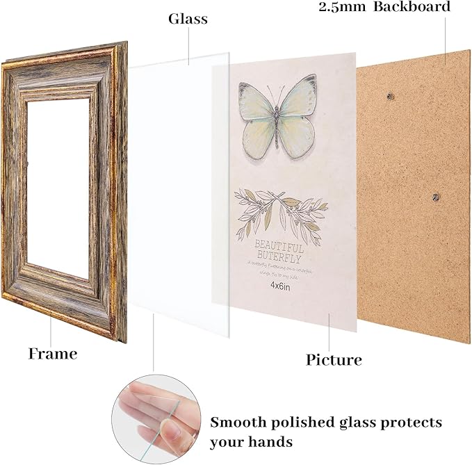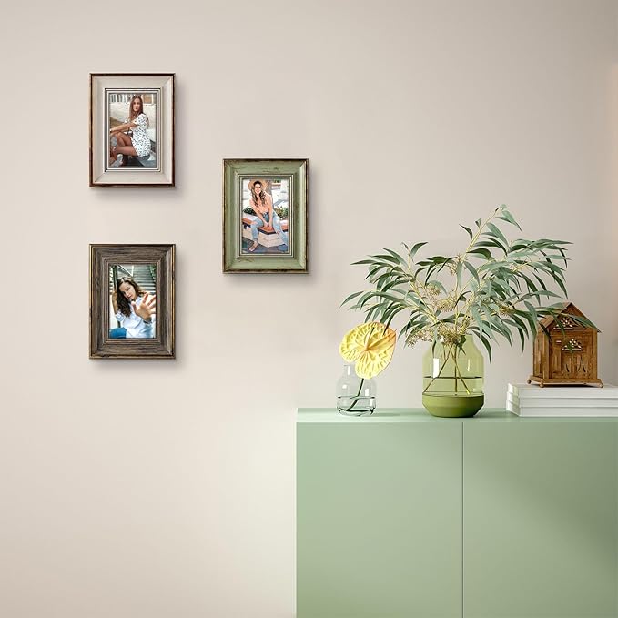 4x6 Picture Frame Set of 3 Rustic Retro Photo Frame with Real Glass for Tabletop Display or Wall Mount