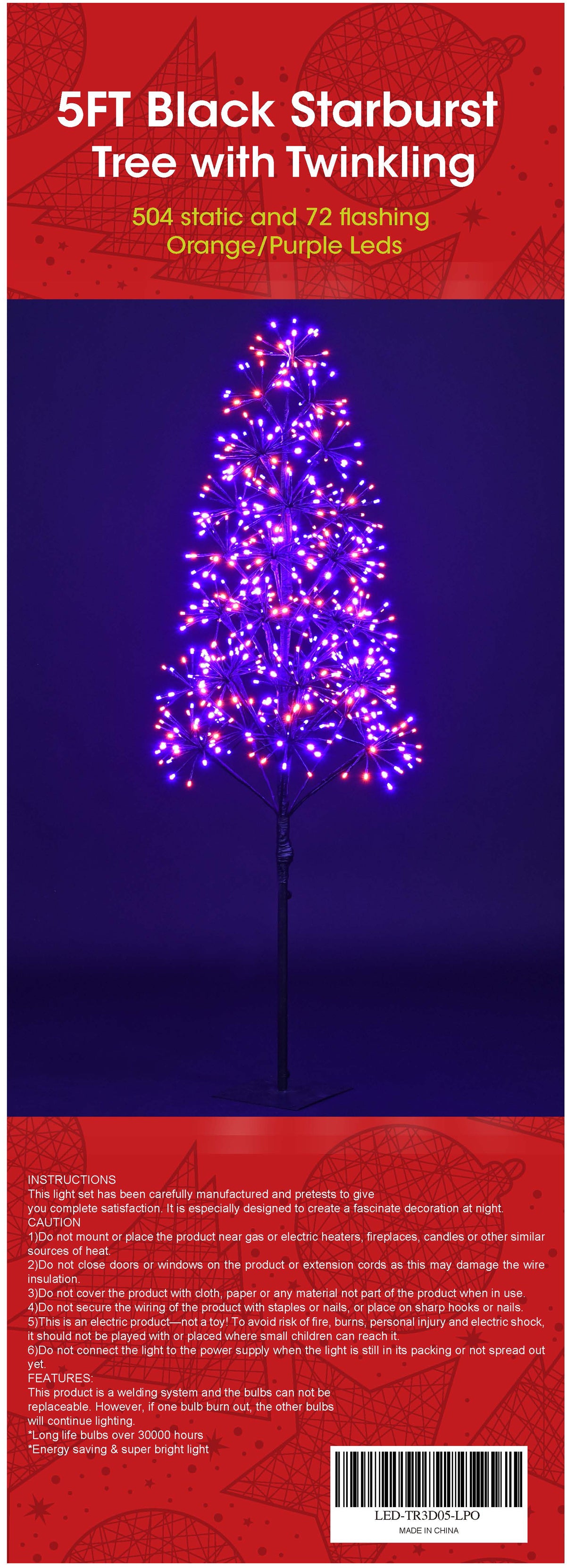 5' Purple and Orange LED Tree