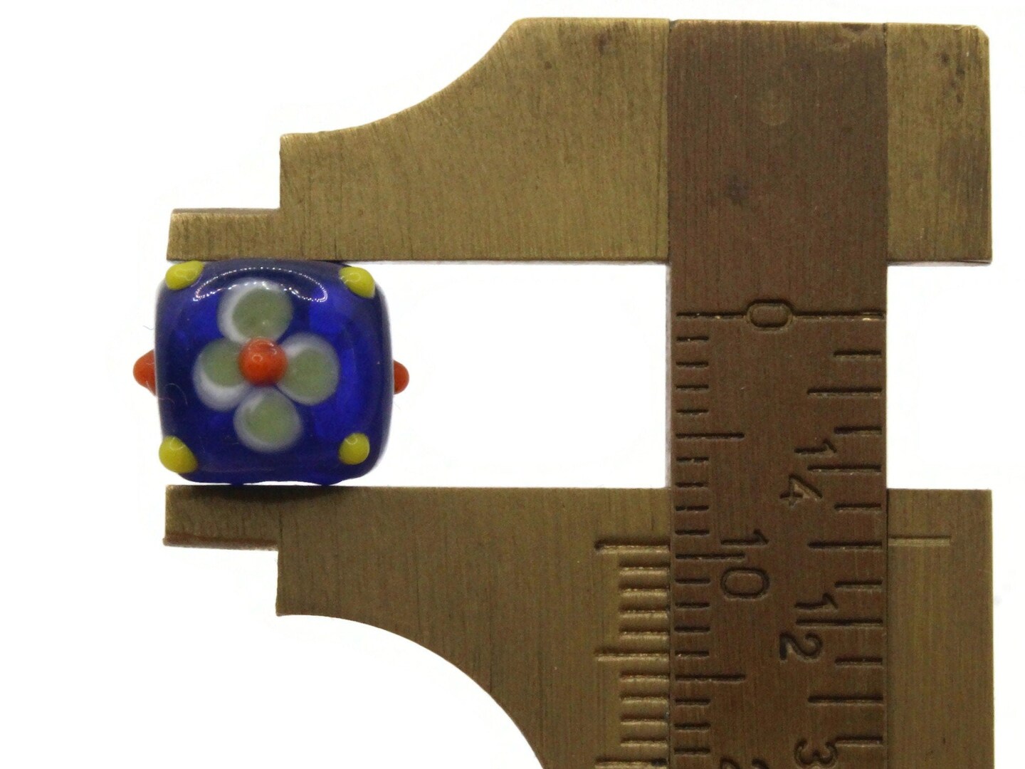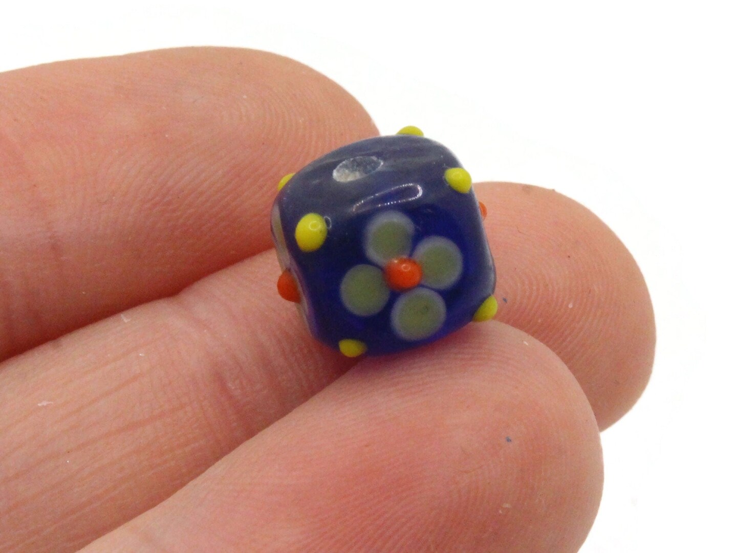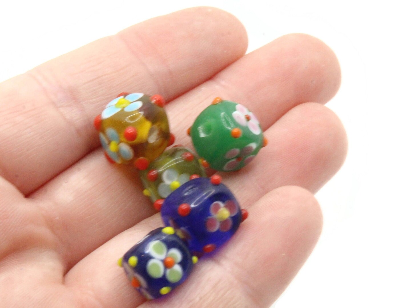 5 10mm Mixed Color Flower Lampwork Glass Cube Beads