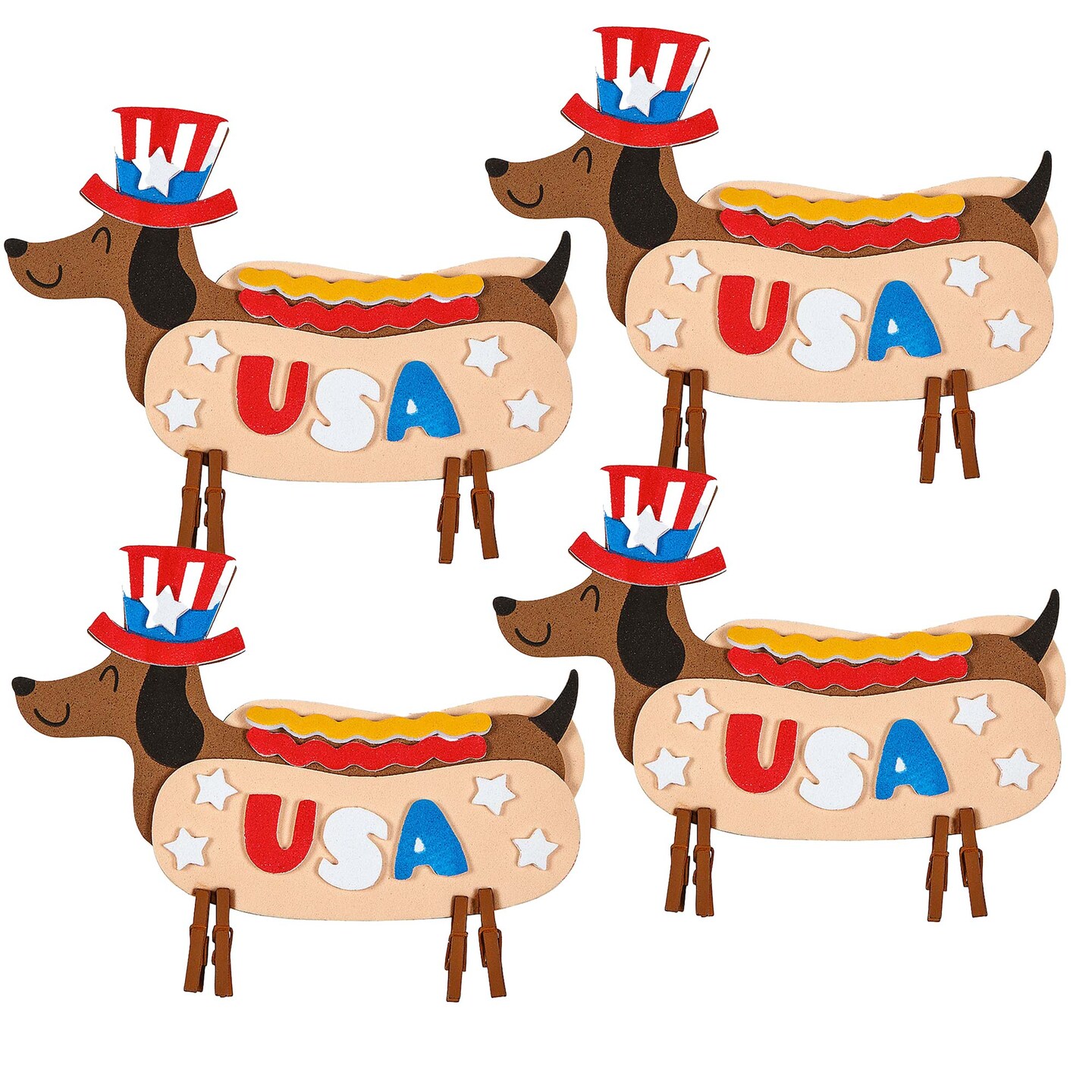 5 1/2" x 4 1/4" Patriotic Hotdog Dachshund Clothespin Craft Kit Makes 12