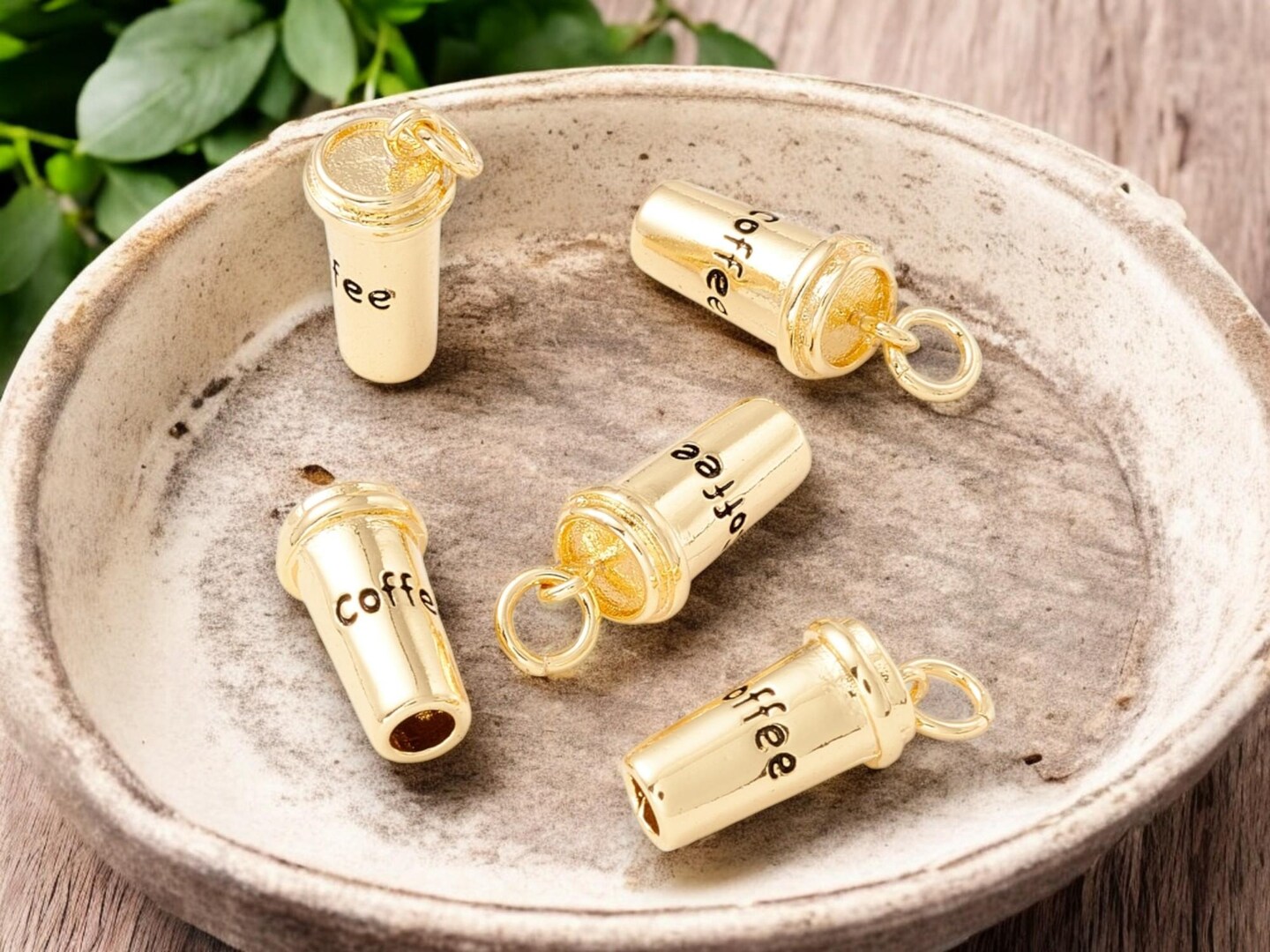 *5* 15x8mm Long Lasting 18k Gold Plated Brass Coffee Cup Charms