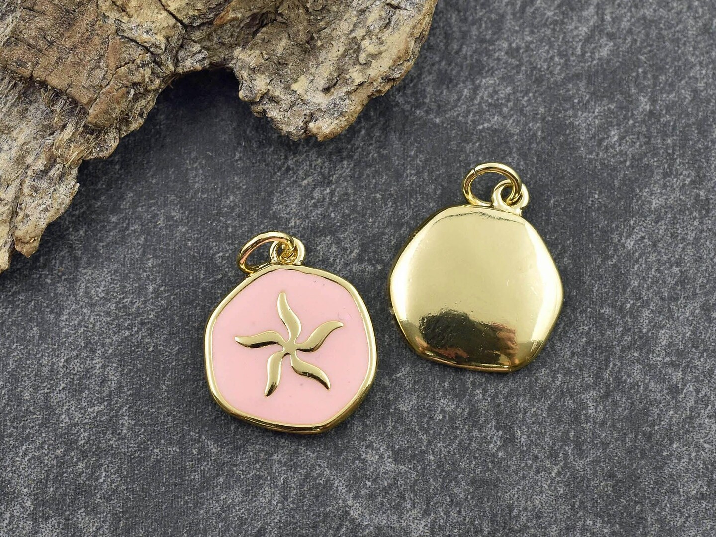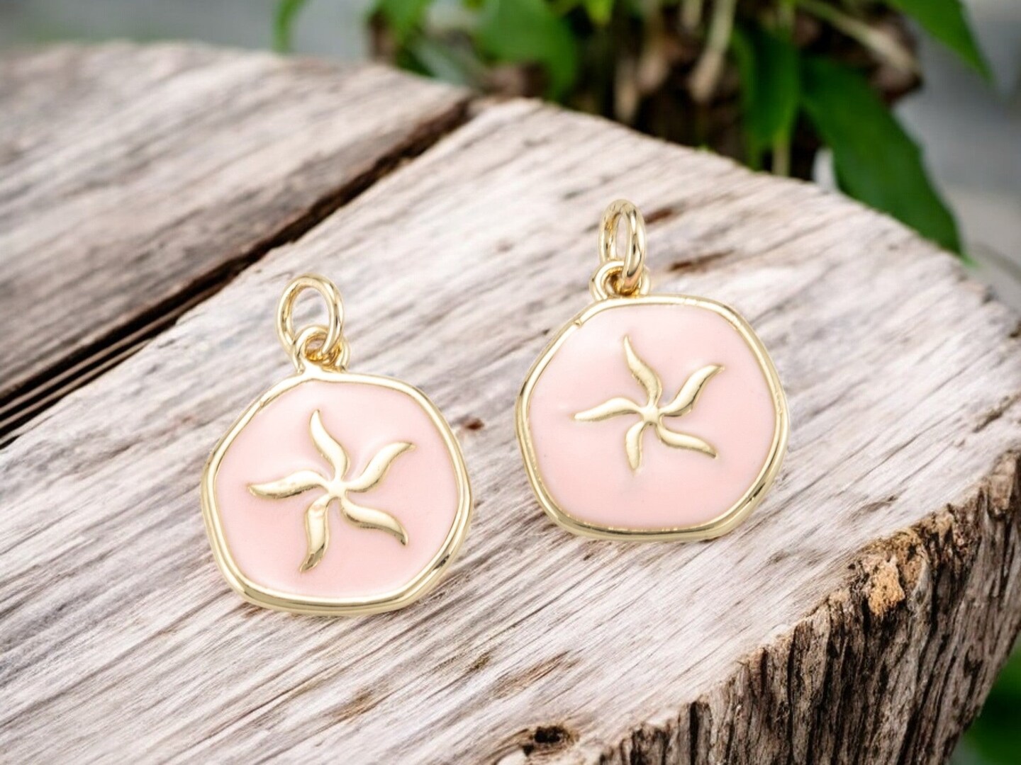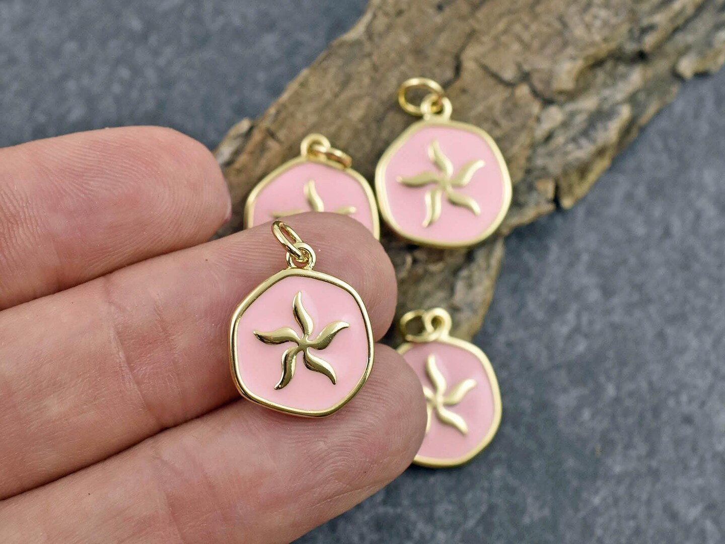 *5* 17x15mm 18k Gold Plated Brass w/Pink Enamel Starfish Charms