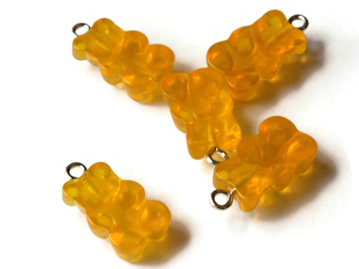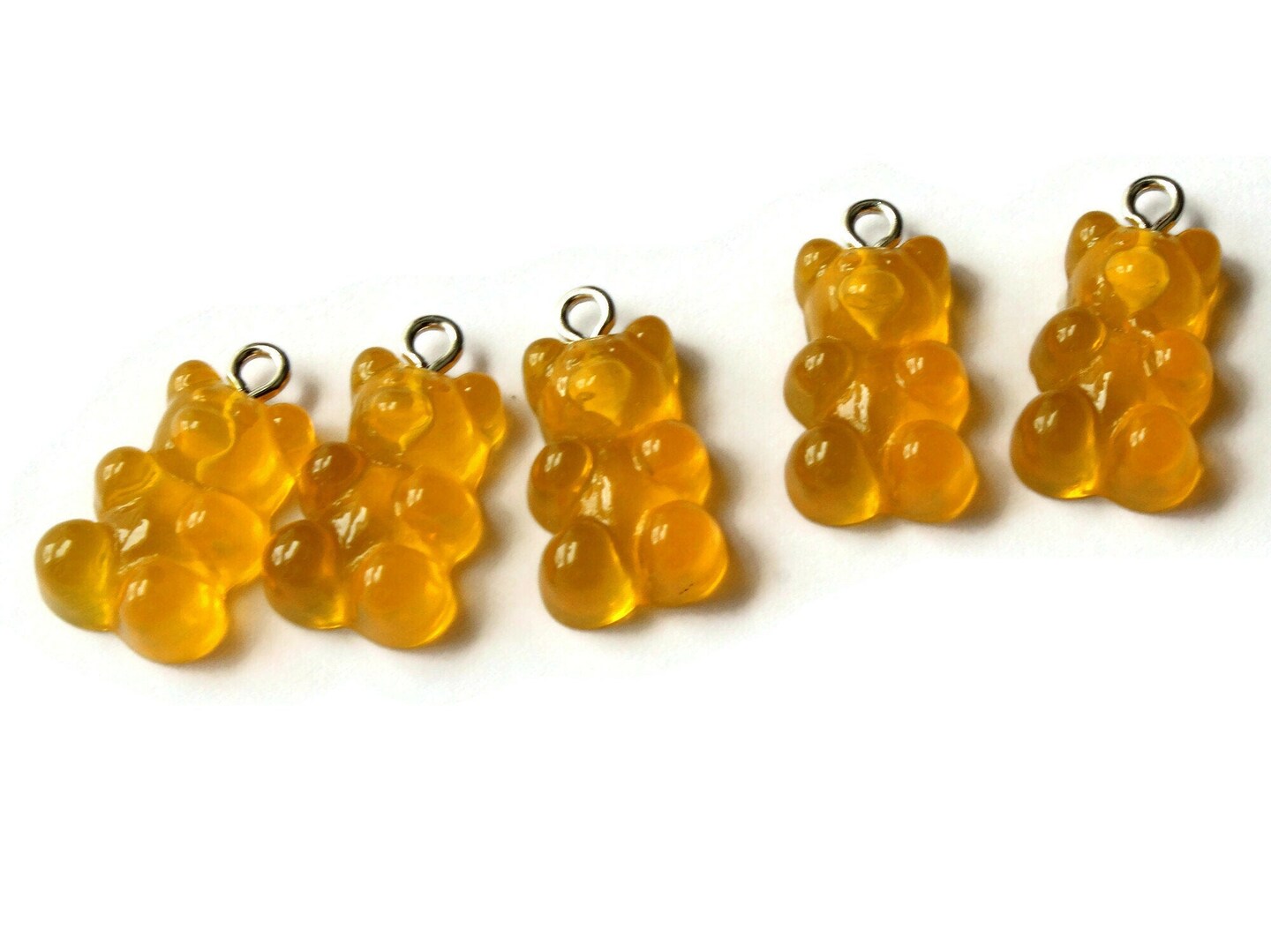 5 20mm Honey Yellow Resin Gummy Bear Charms