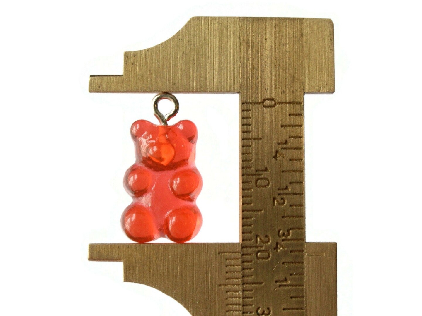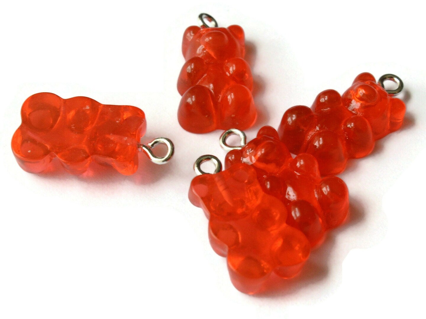 5 20mm Red Gummy Bear Charms Resin Pendants with Platinum Colored Loops Jewelry Making Beading Supplies Loose Candy Charms