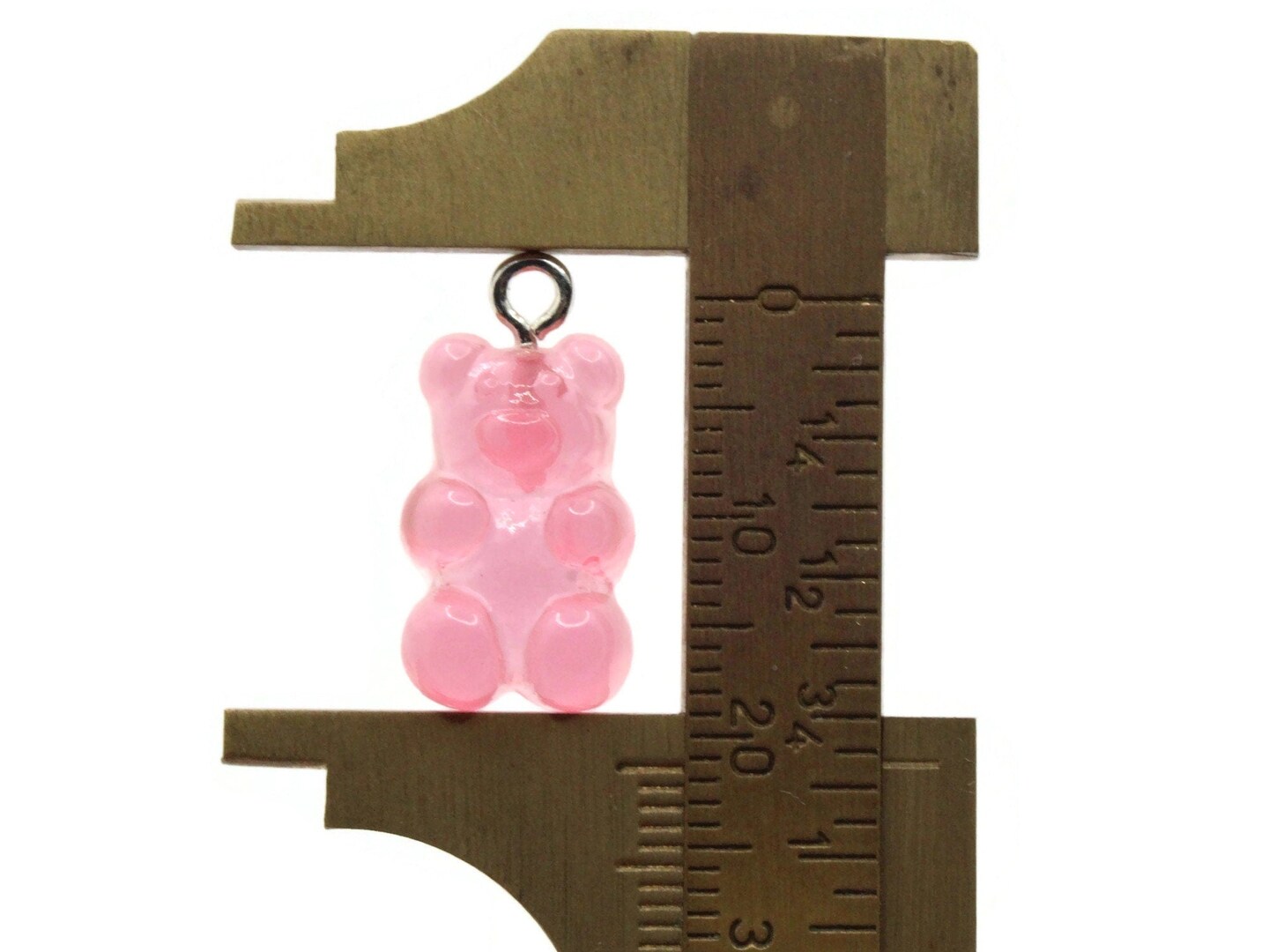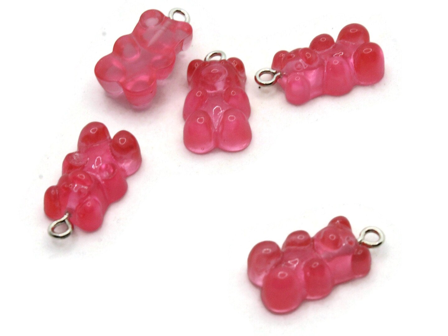 5 20mm Strawberry Pink Gummy Bear Charms - Resin Pendants with Platinum Colored Loops