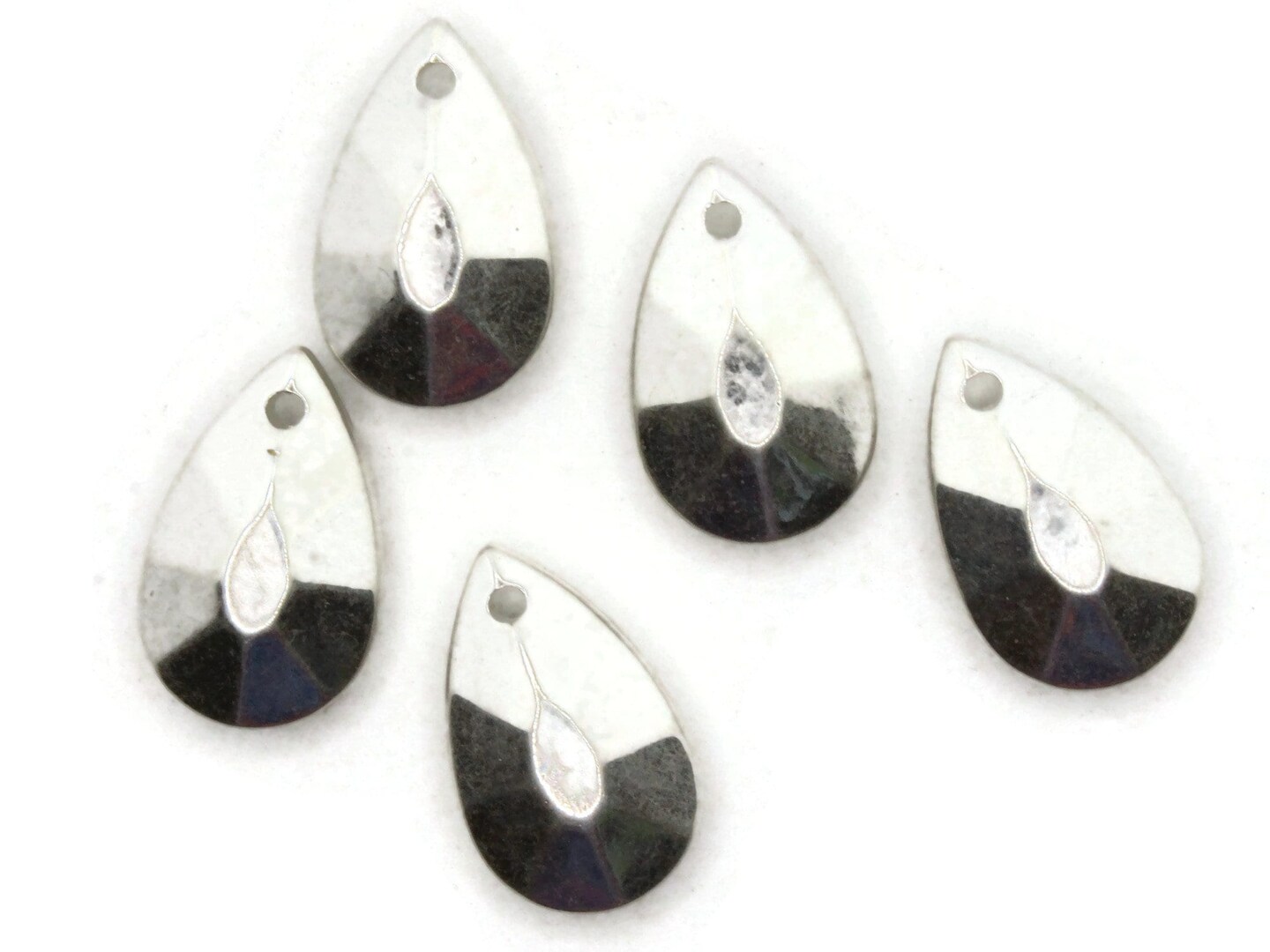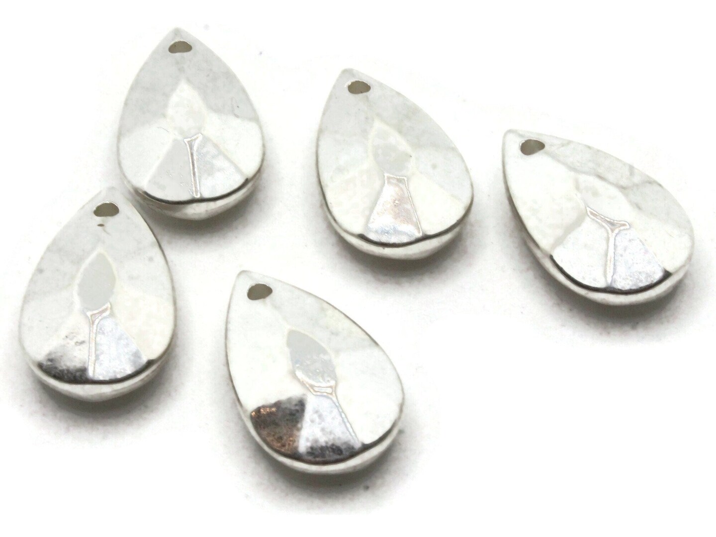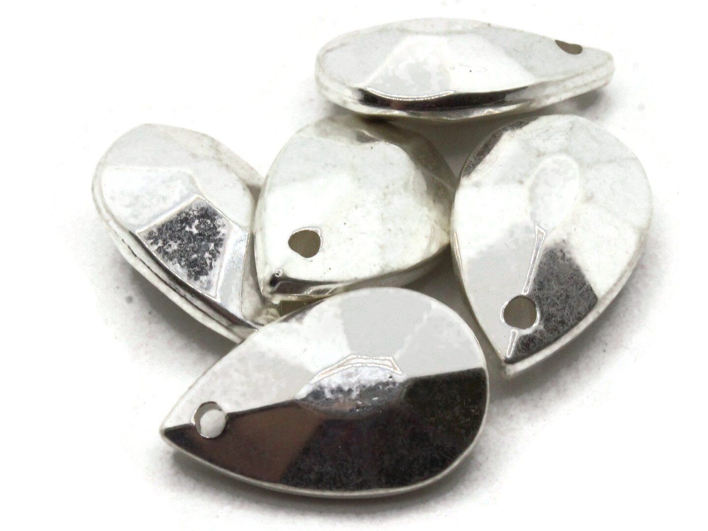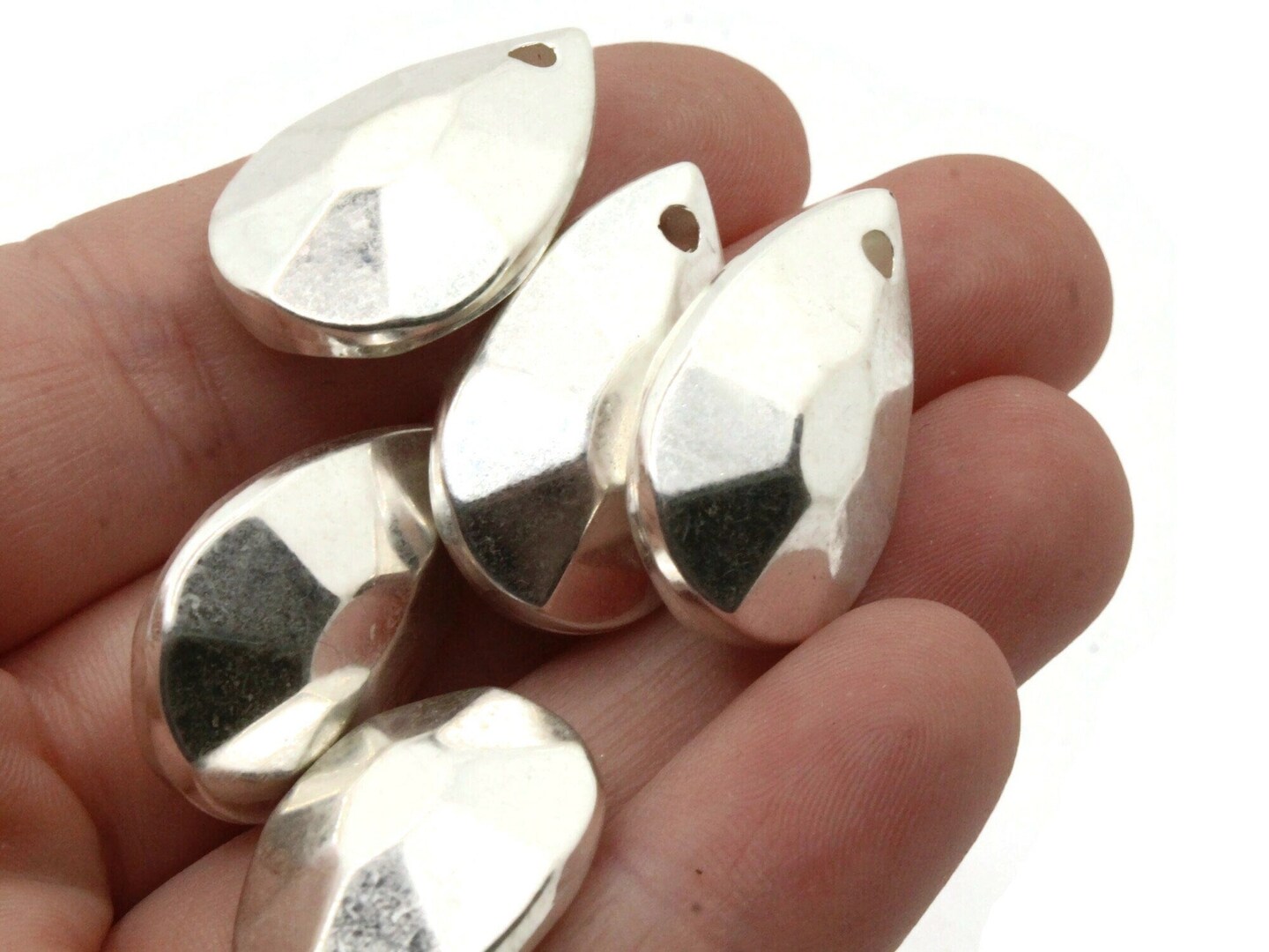 5 26mm Faceted Teardrop Vintage Silver Plated Plastic Beads
