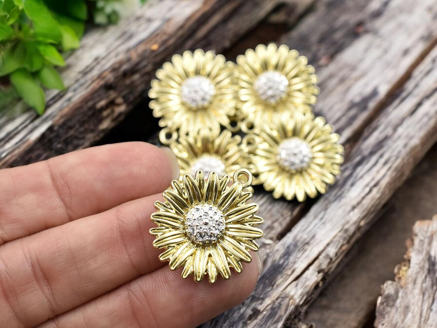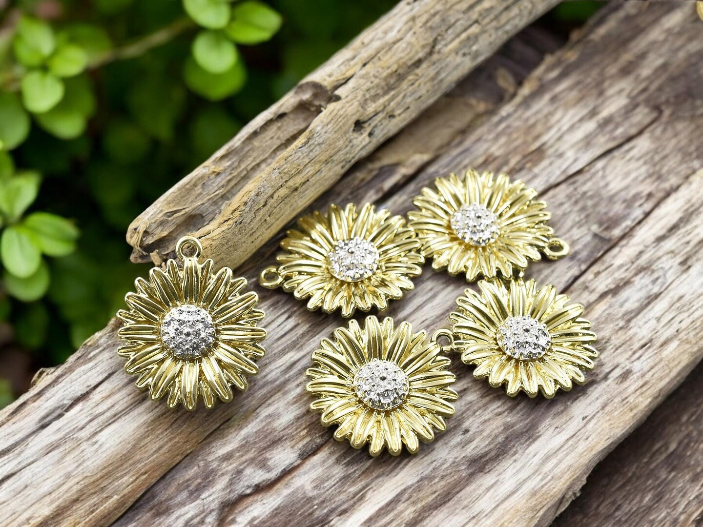 *5* 28x24mm Gold Plated Sunflower Pendant Charms