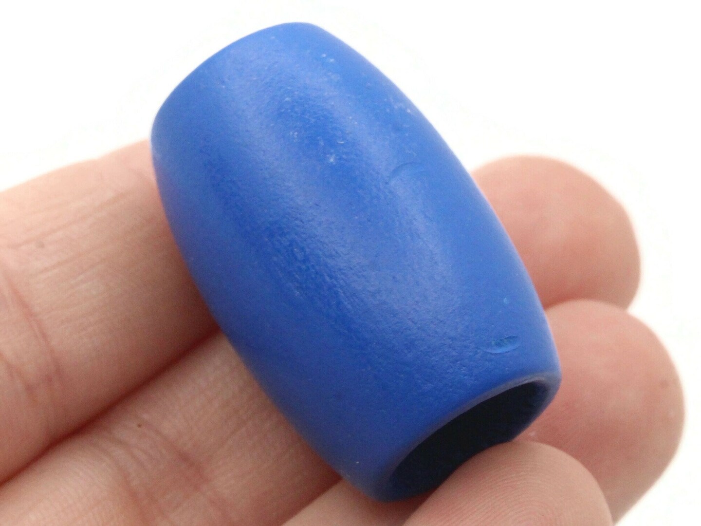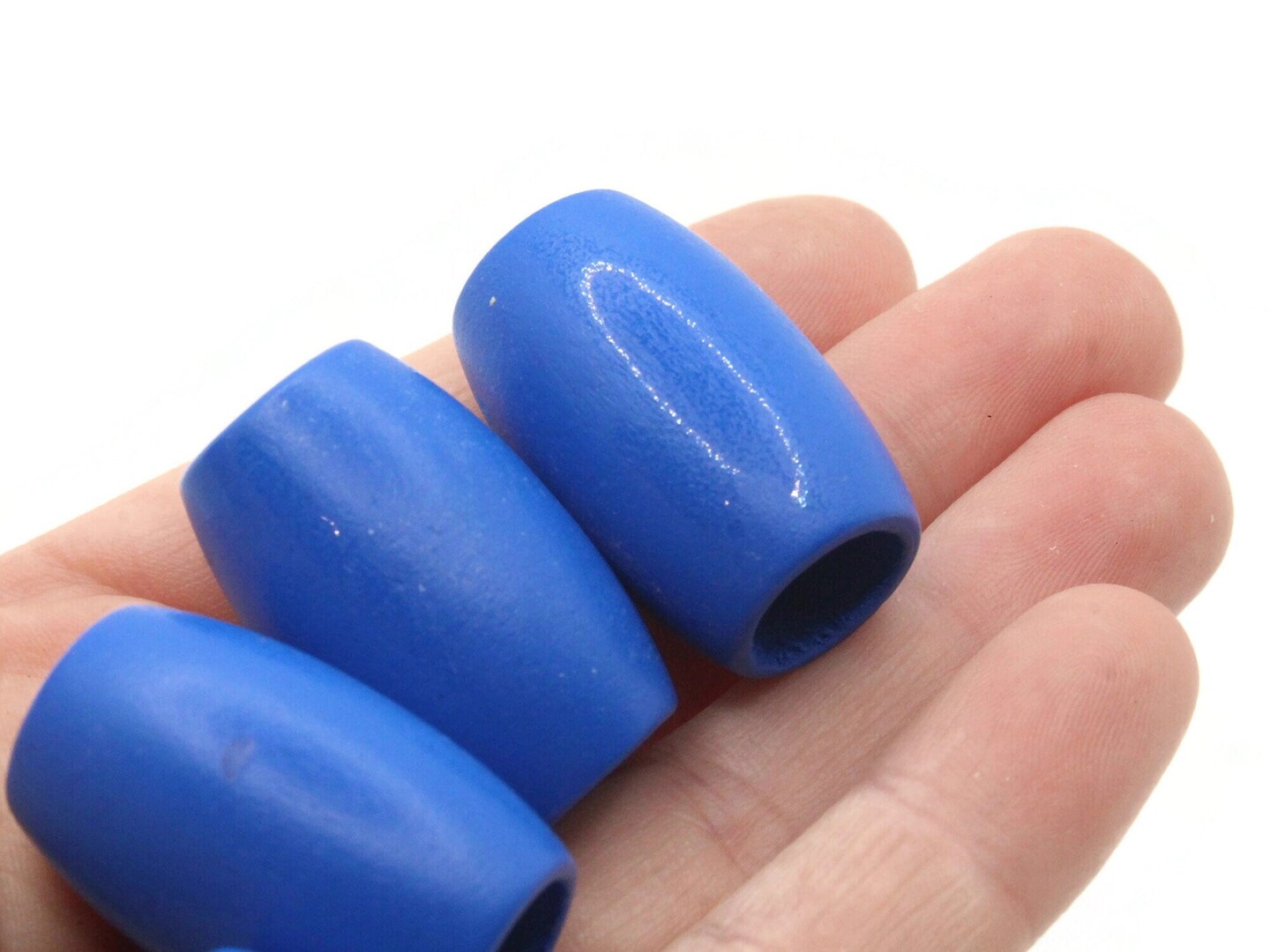 5 30mm Blue Wood Barrel Large Hole Macrame Beads