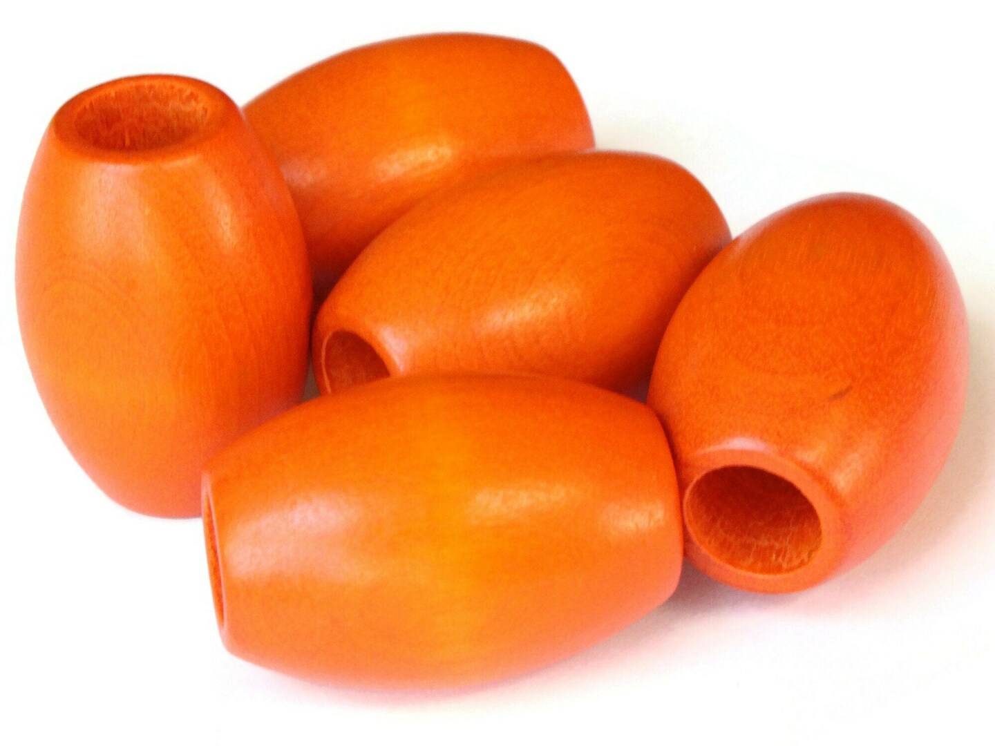5 32mm Orange Wood Barrel Beads Vintage Macrame Large Hole Beads
