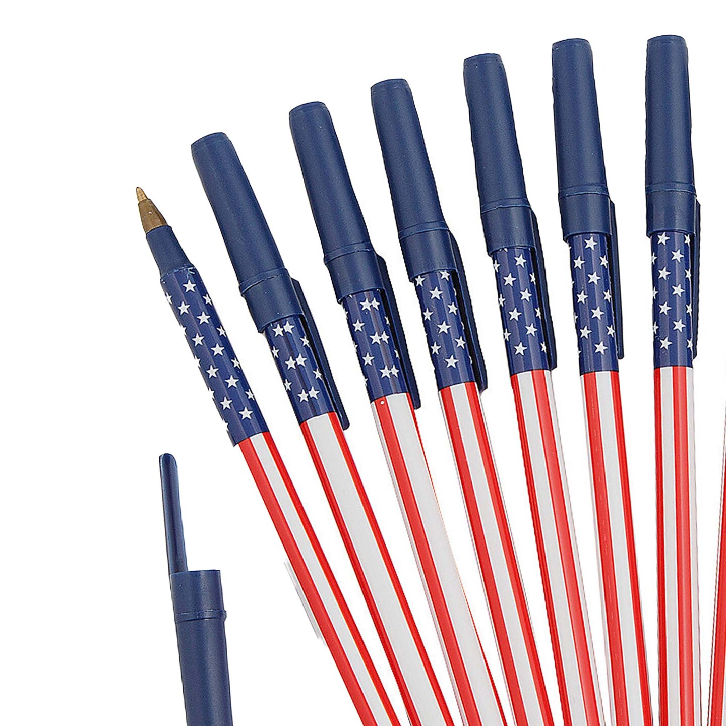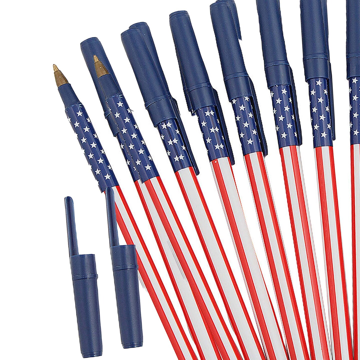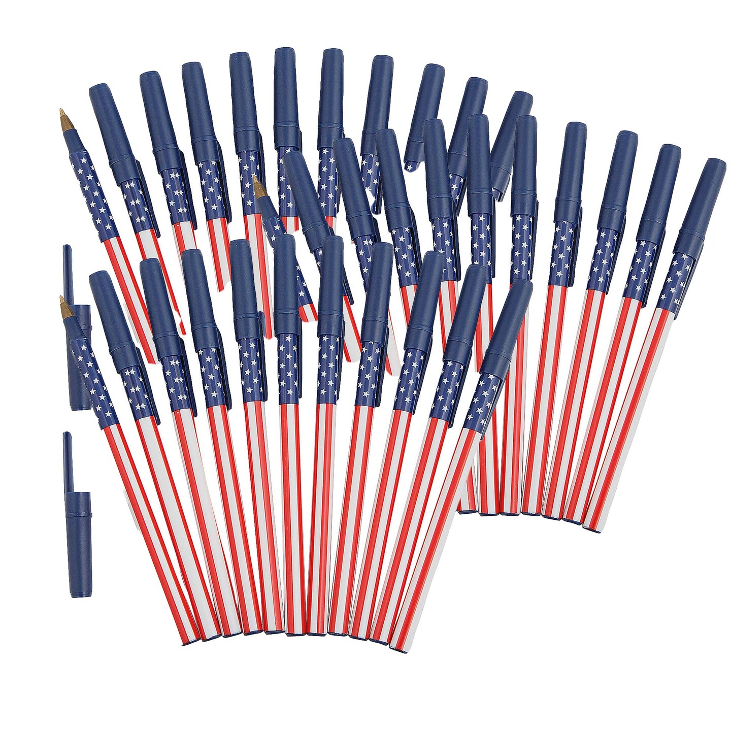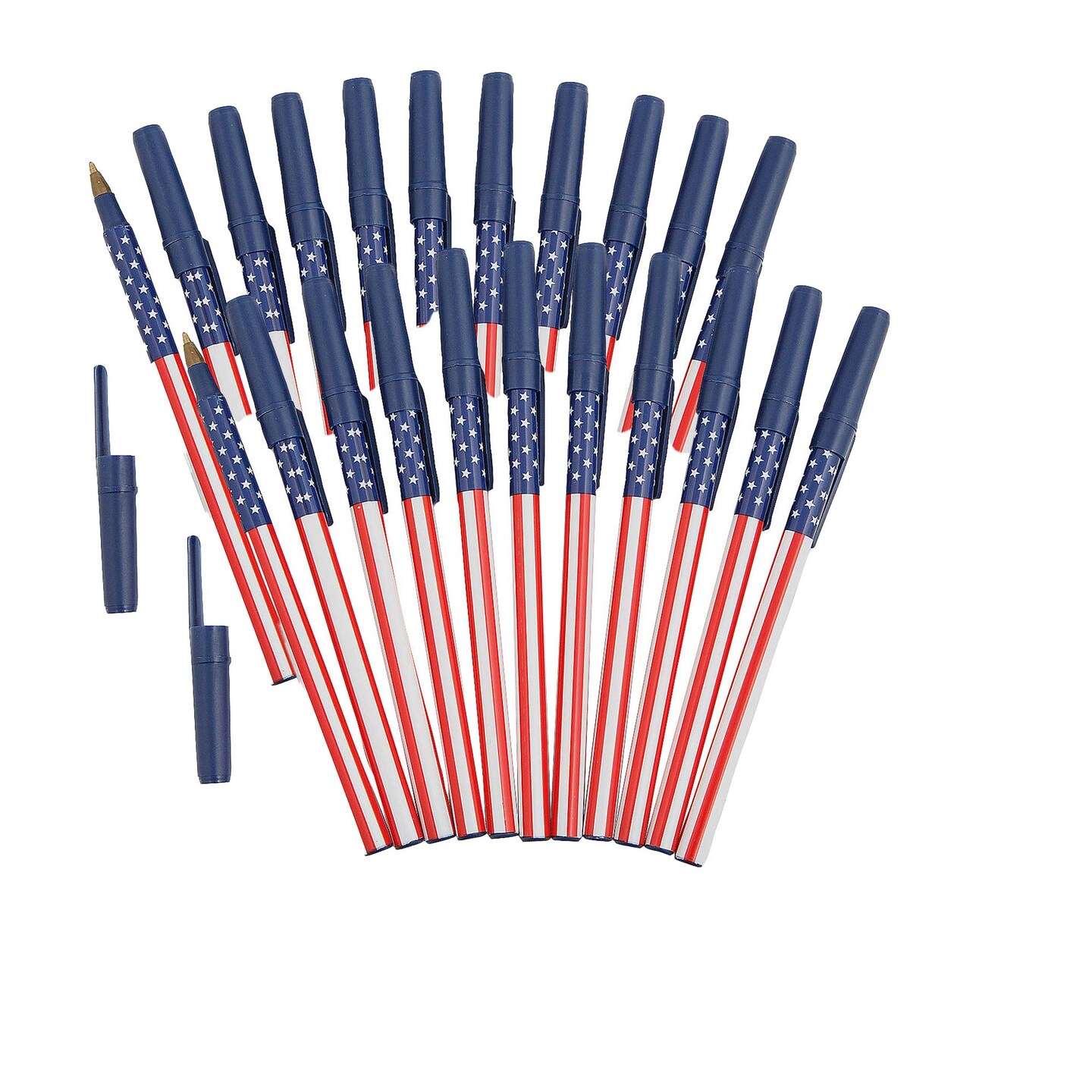 5 3/4" Patriotic USA Flag Stars & Stripes Stick Pens 12 Pc.
