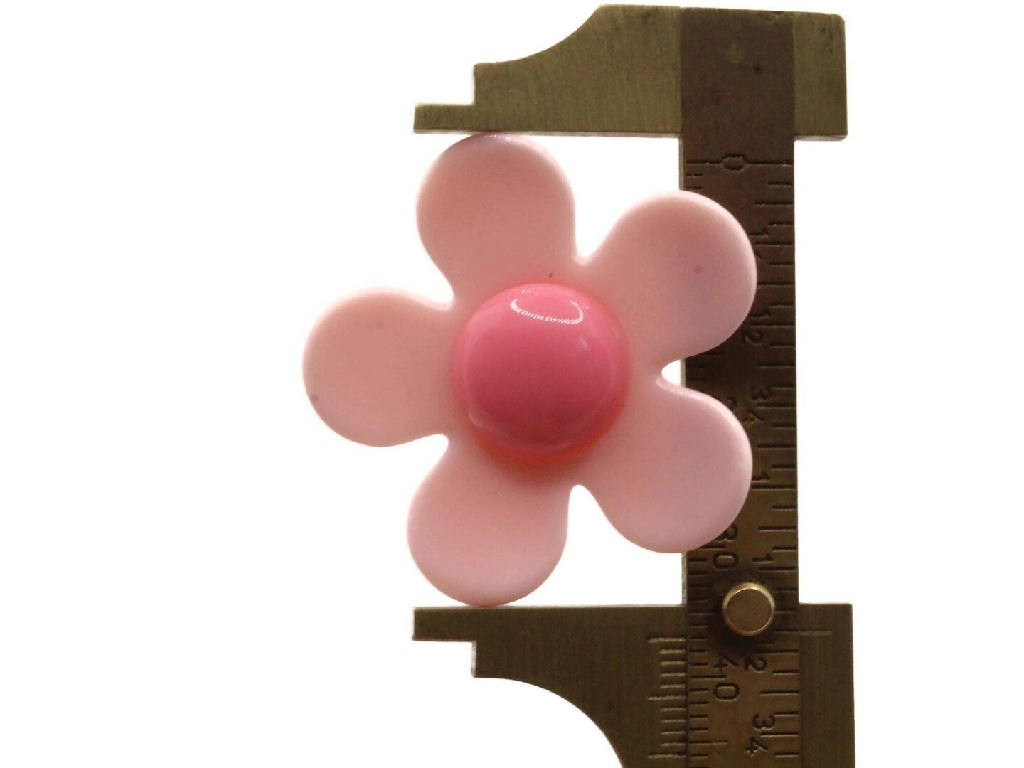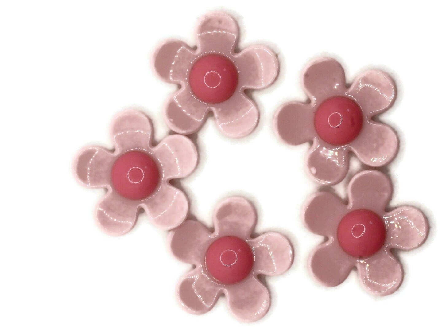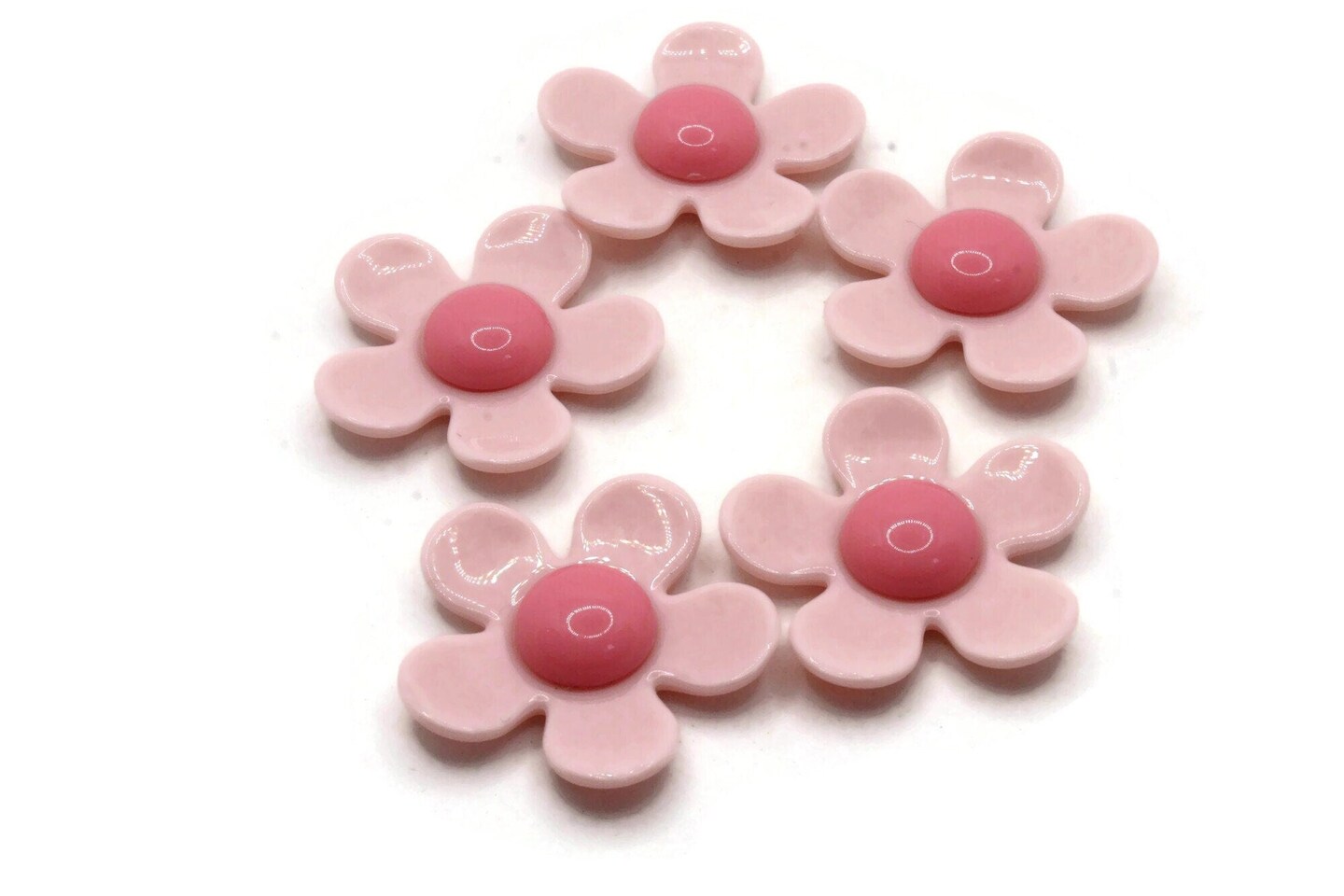 5 36mm Pink and Bright Pink Daisy Plant Plastic Flatback Cabochons