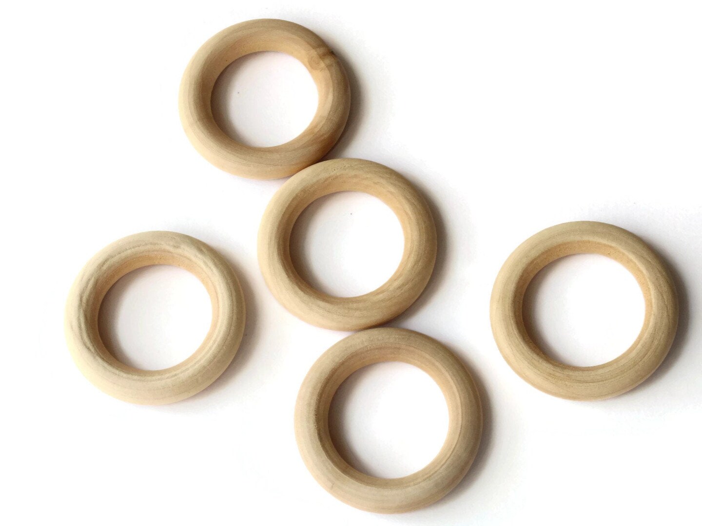 5 39mm Natural Wood Large Ring Beads Wooden Donut Beads Macrame Beads