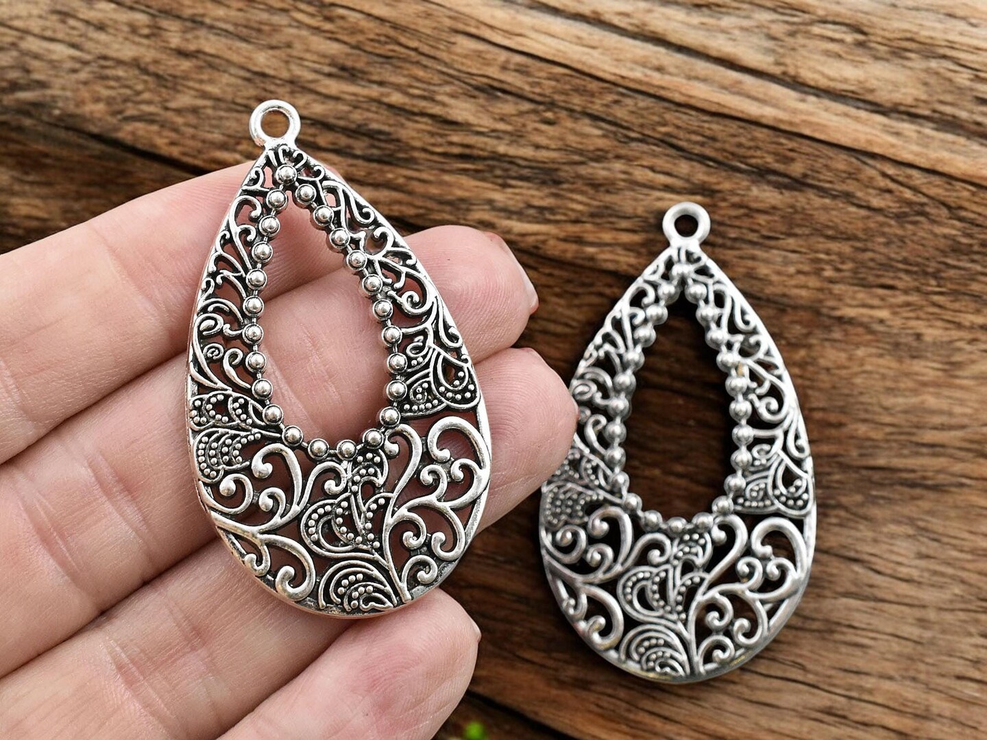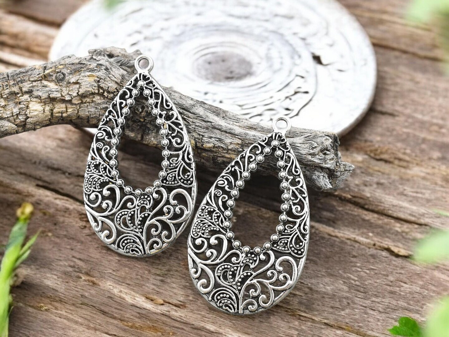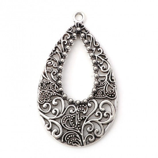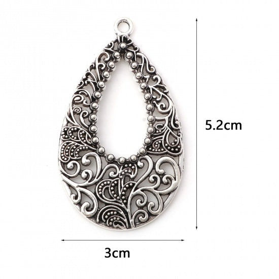 *5* 52x30mm Antique Silver Earring Drops