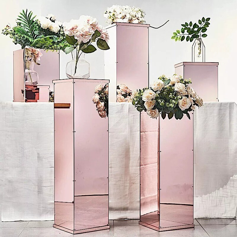 5 Blush Acrylic Display Boxes Centerpieces Pedestal Riser Columns Wedding Party