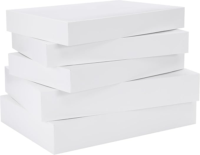 5 Boxes Assorted Sizes(3 Boxes 14", 2 Boxes 16") White Gift Boxes With Lids For Christmas, Birthdays and more