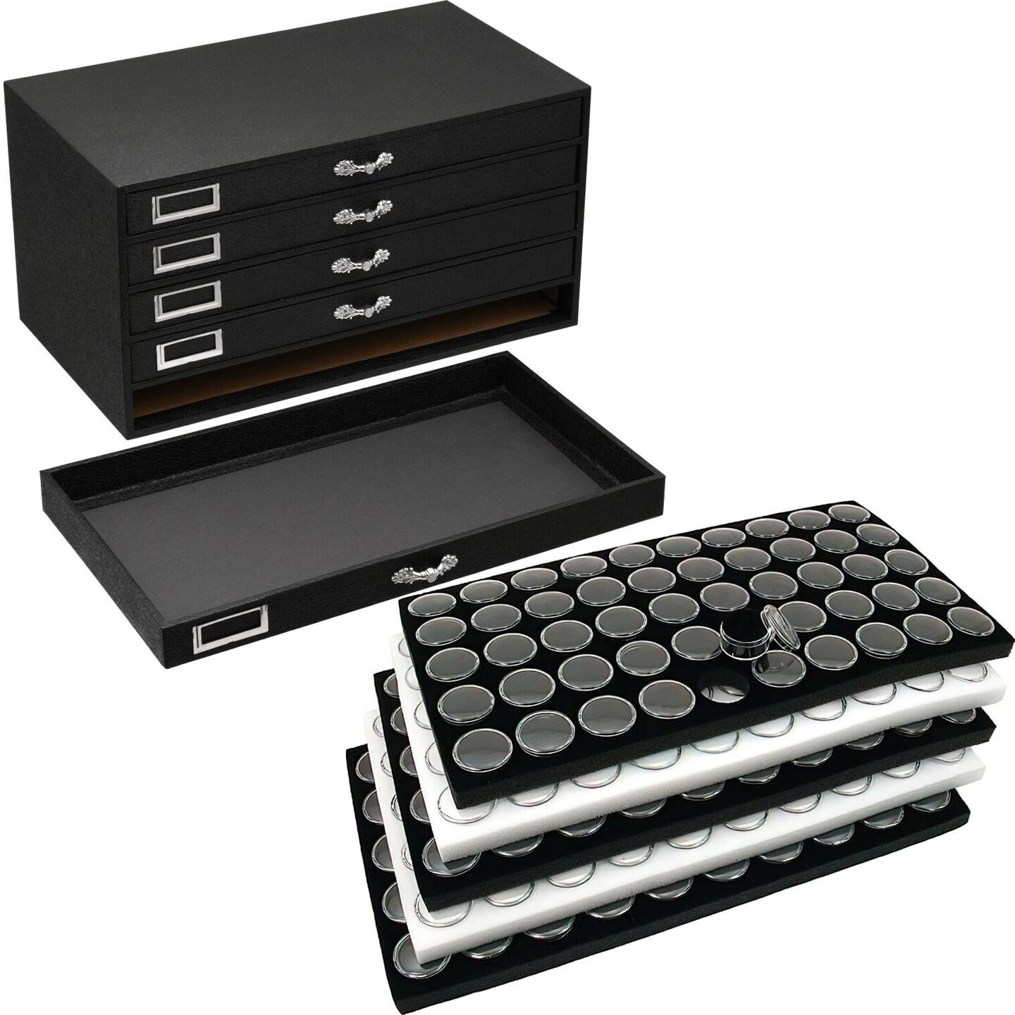 5 Drawer Jewelry Organizer Display Case 250 Gem Jars