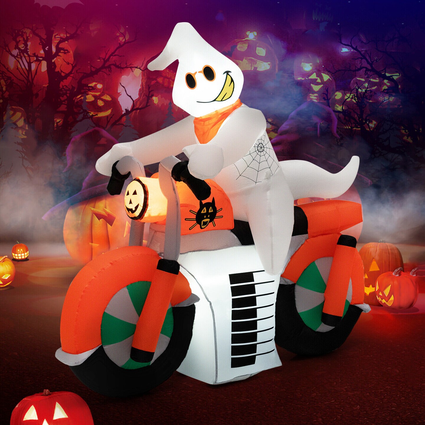 5 Feet Halloween Inflatable Ghost Riding on Motor Bike with LED Lights
