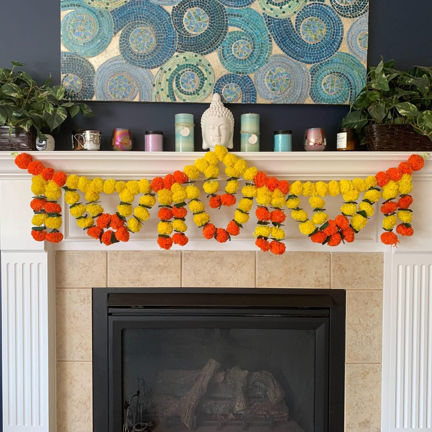 5 Feet Marigold Yellow Orange Door Toran Hanging Valance Festival Garland Indian Wedding Decor Indoor Outdoor Bandarwal Pooja Decor Diwali Decoration