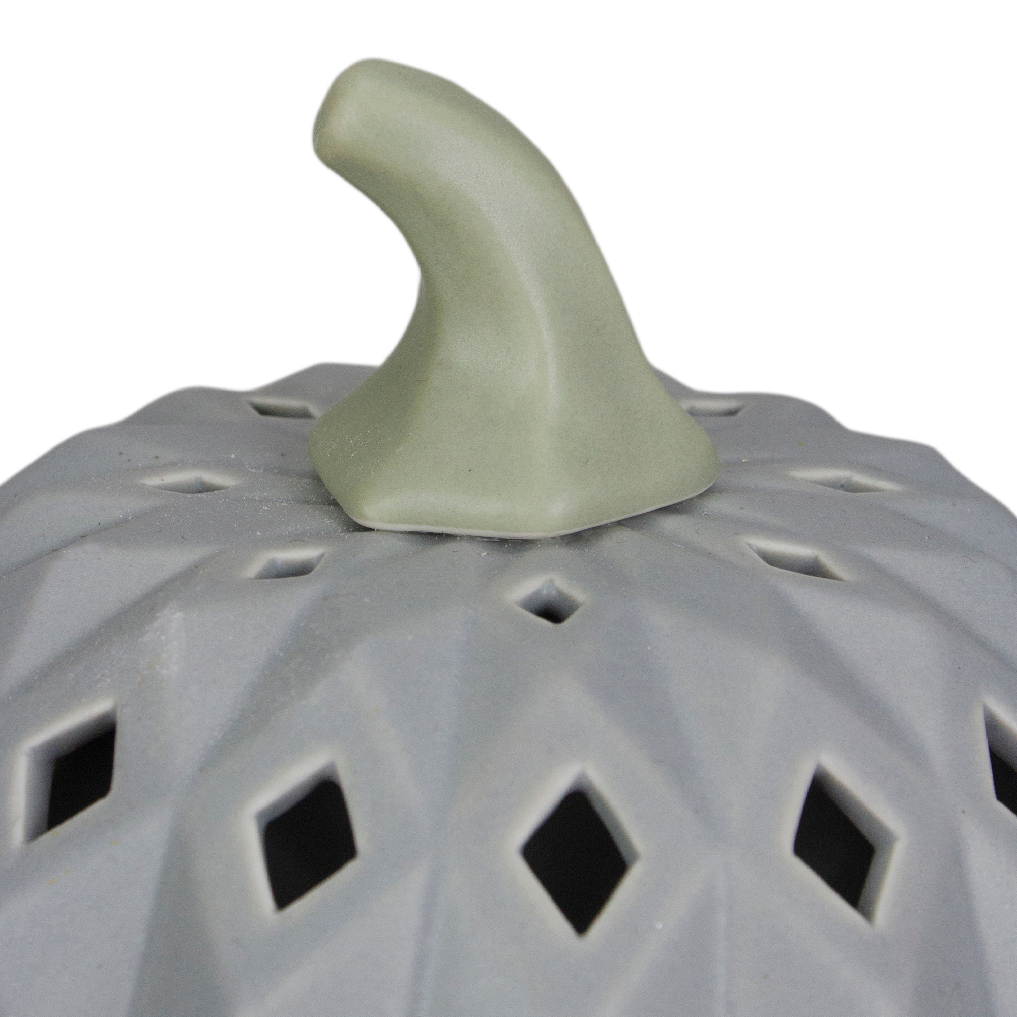 5" Gray & Green Lighted Fall Harvest Ceramic Pumpkin