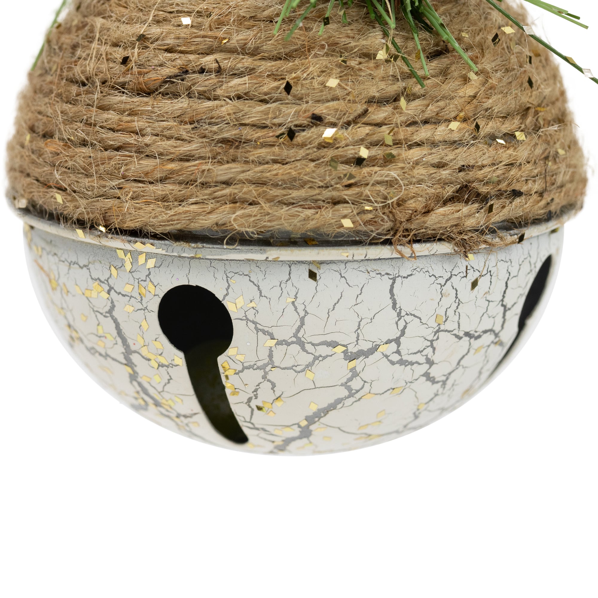 5" Green Rustic Pinecone & Holly Berry Jingle Bell Ornament