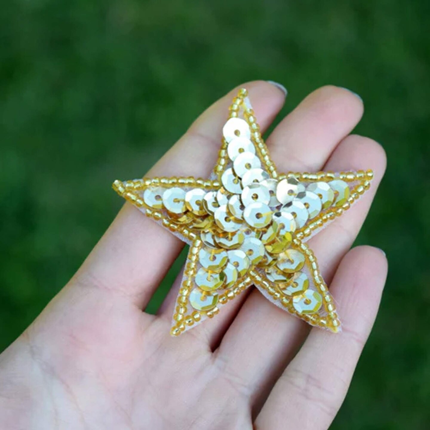 5 Large 3" Gold Star Sequin Beaded Iron On Patches for Jackets DIY Crafts Party Decor