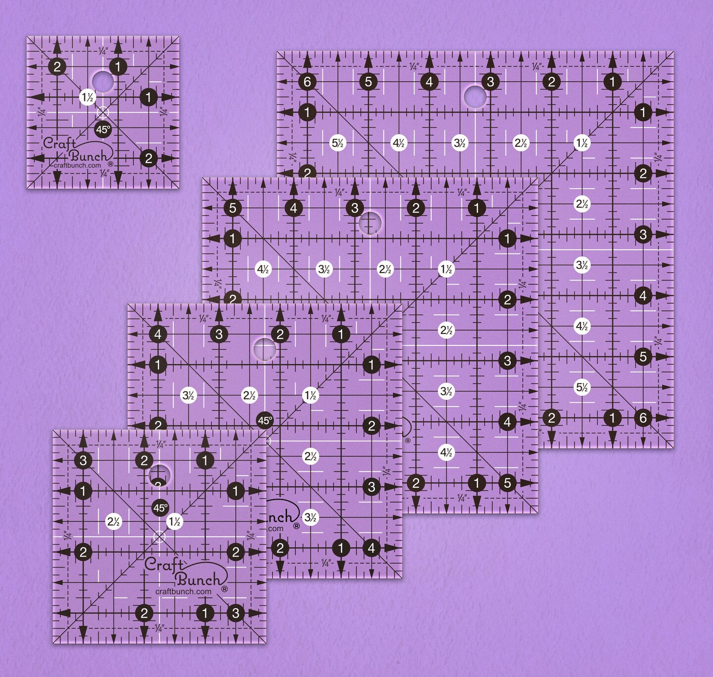 5 Non-Slip Premium Acrylic Square Quilt Rulers - 3mm thick! - 2.5", 3.5", 4.5", 5.5", 6.5"
