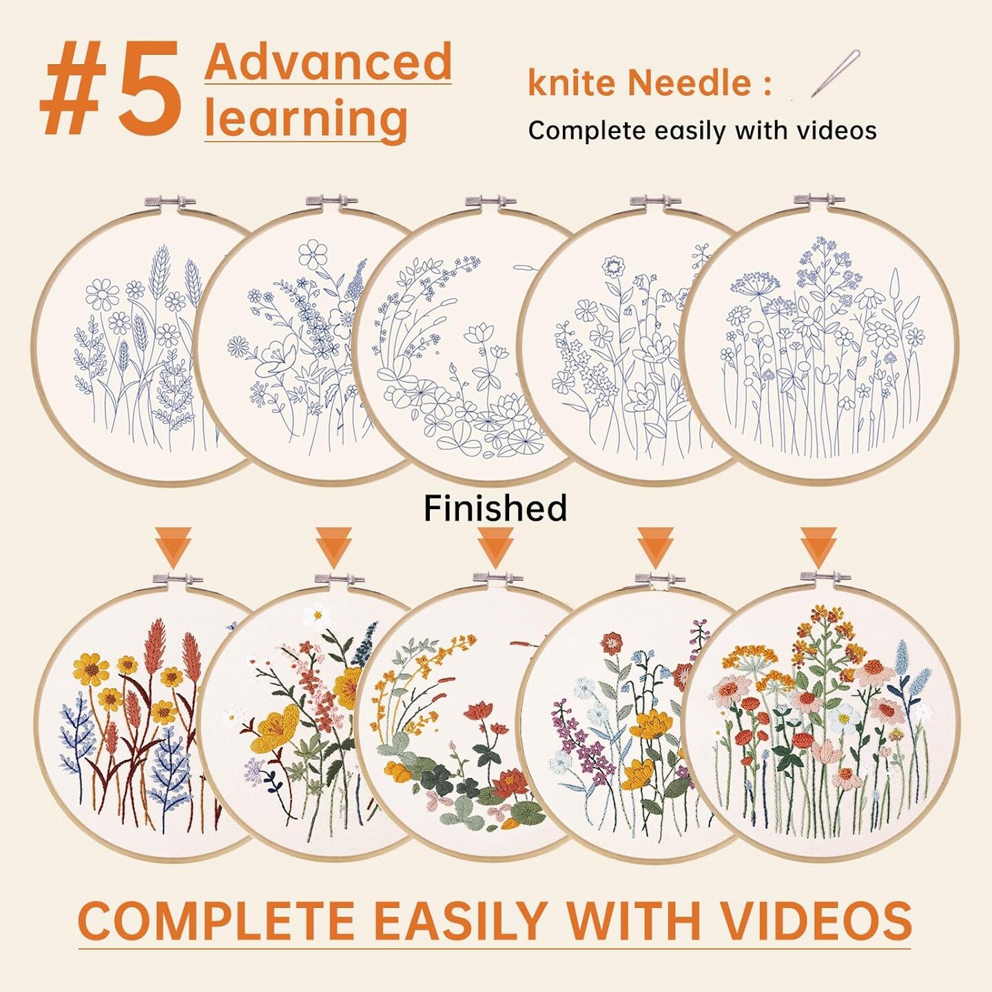 5 Pack Beginner Embroidery Kit for Adults, Easy to Learn Floral Embroidery Patterns