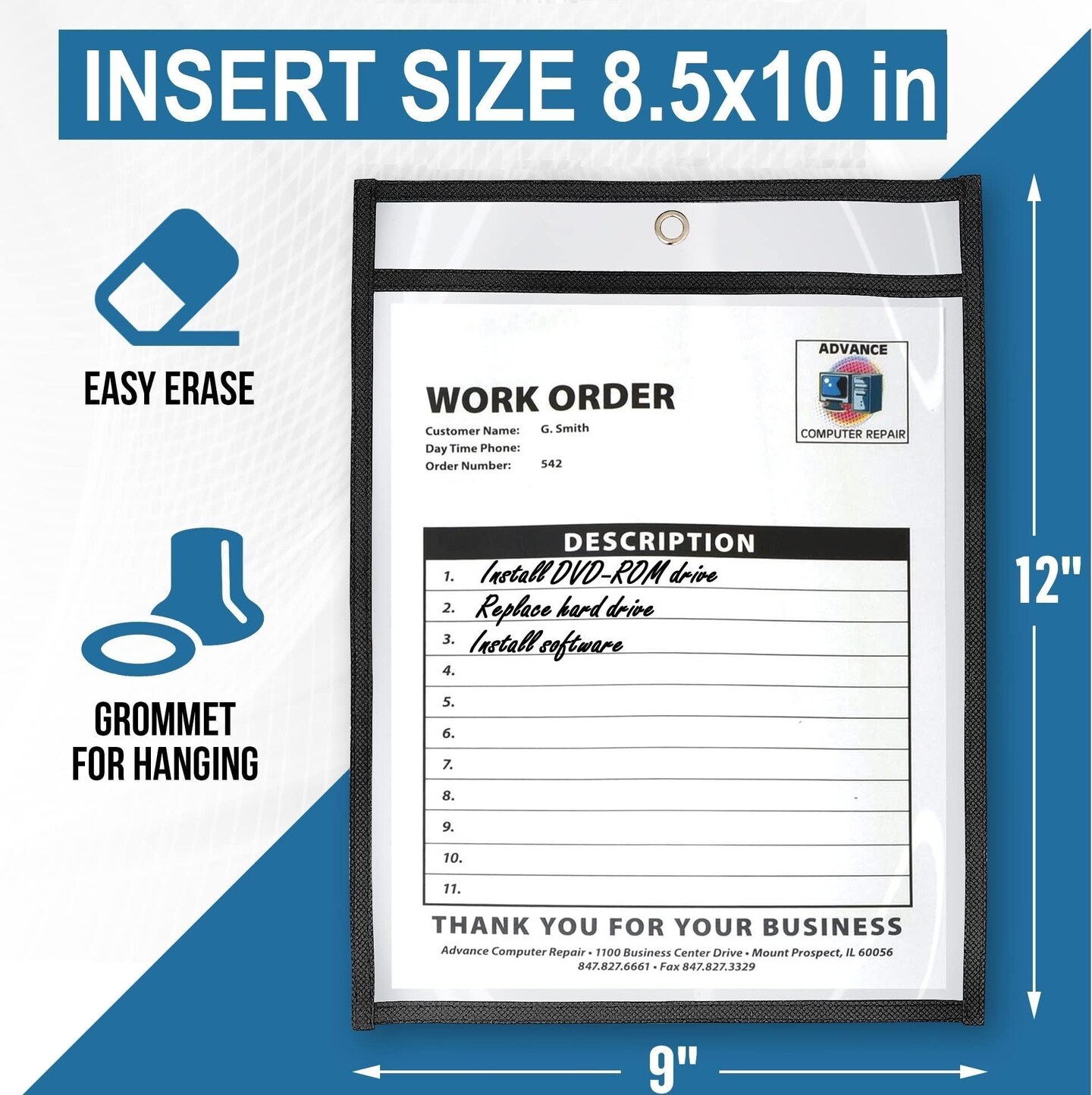 5 Pack Job Ticket Holders 6x9 Dry Erase Pocket Sleeves Shop Ticket Holders Work Order Plastic Sleeves Ticket Holder Dry Erase Sleeves Clear Document Holder Reusable Dry Erase Pockets