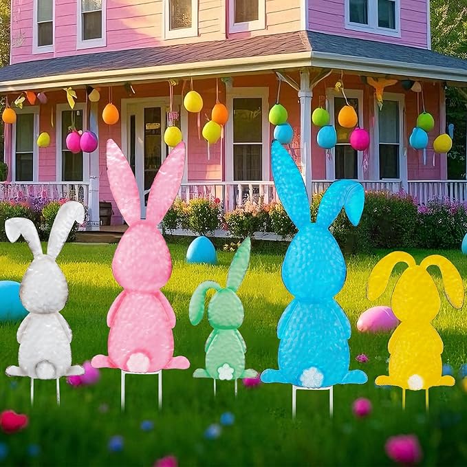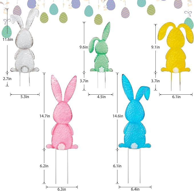 5 Packs Easter Garden Stakes Decorations, Metal Bunny Yard Signs, Adorable Rabbit Stakes in Five Colors for Courtyard Patio Spring Lawn Holiday Outdoor Display Props