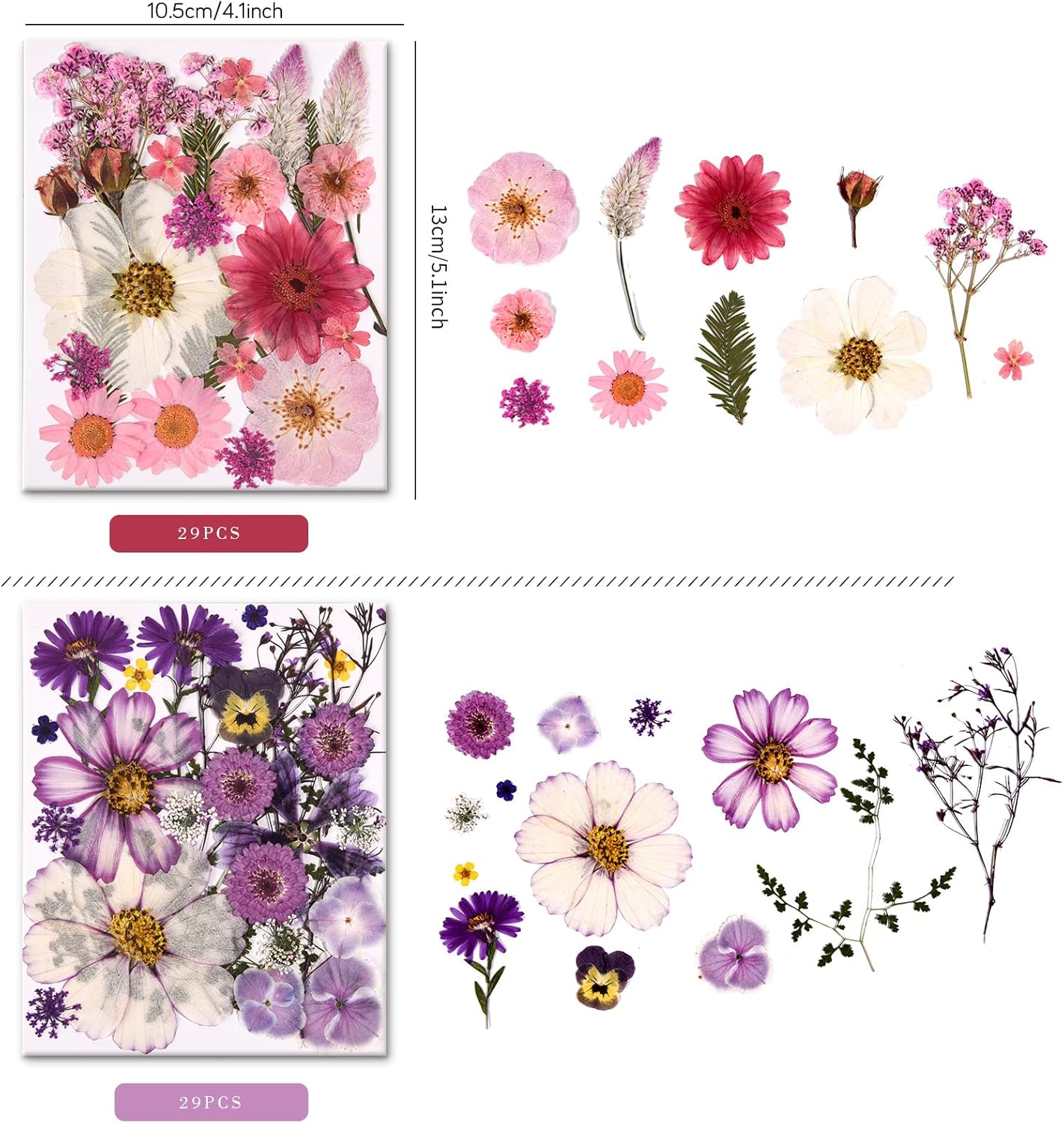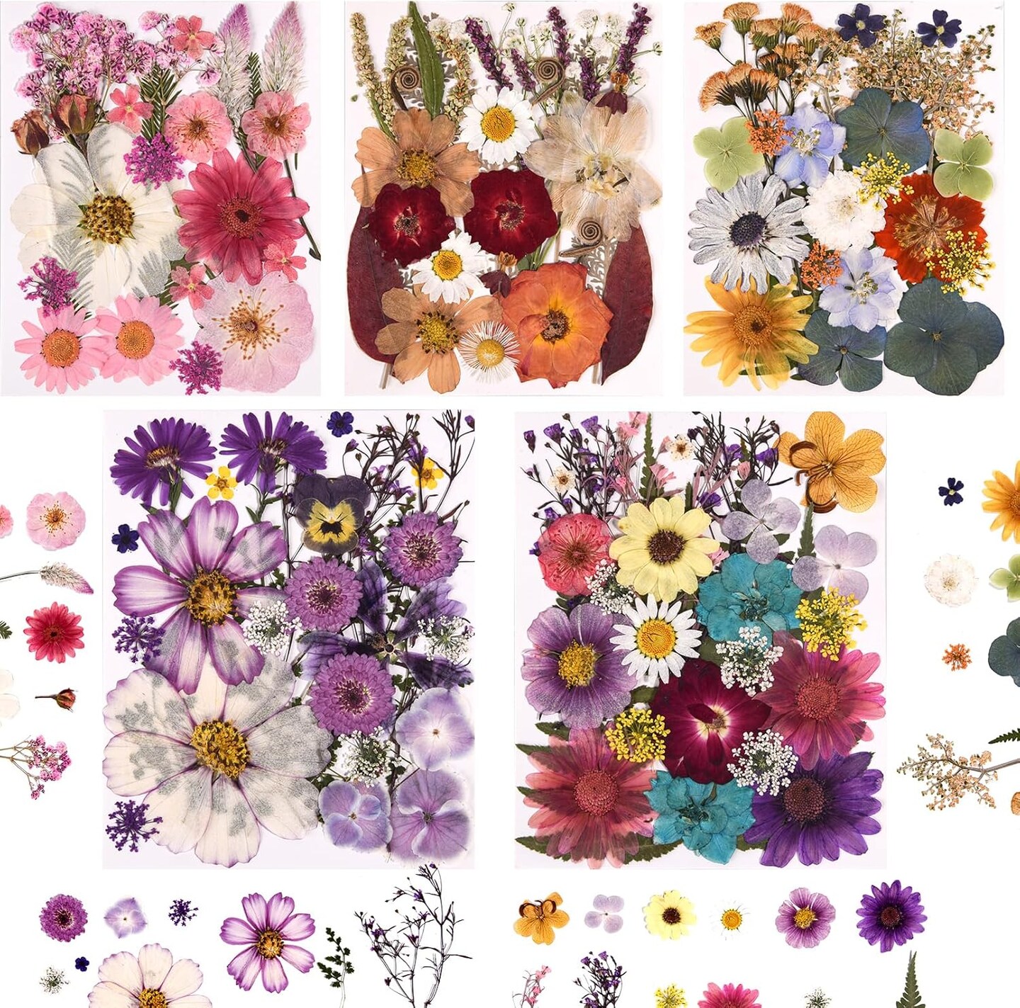 5 Packs of 140 Pressed Dried Flowers and Leaves