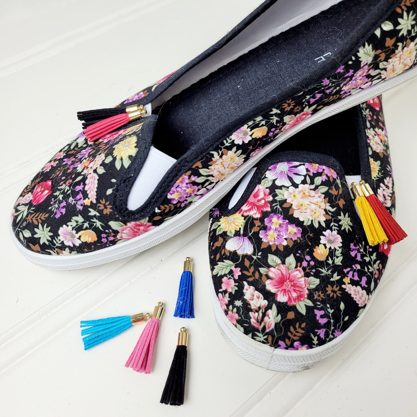 5 PC Joyce Rhinestone Leather Like Tassels w/Lobster Clasp