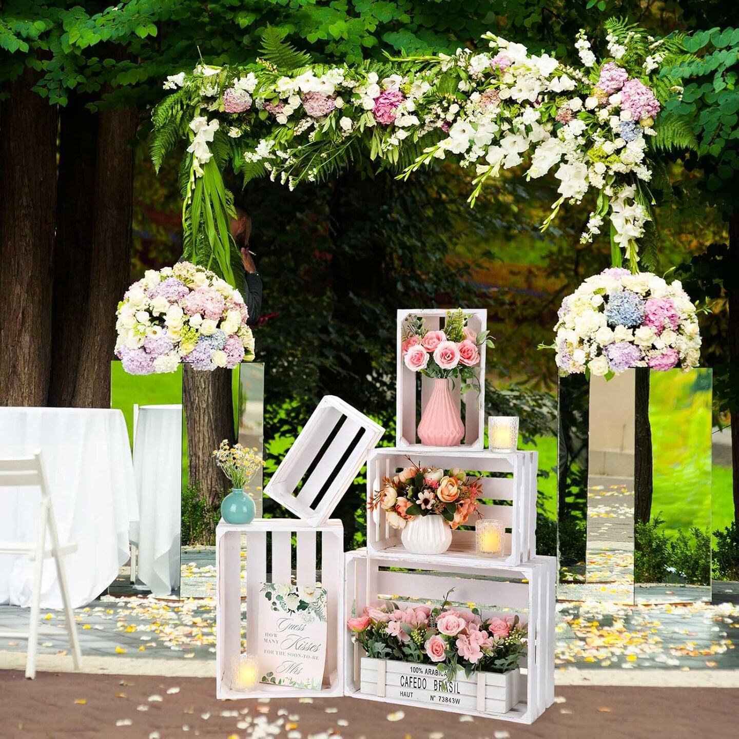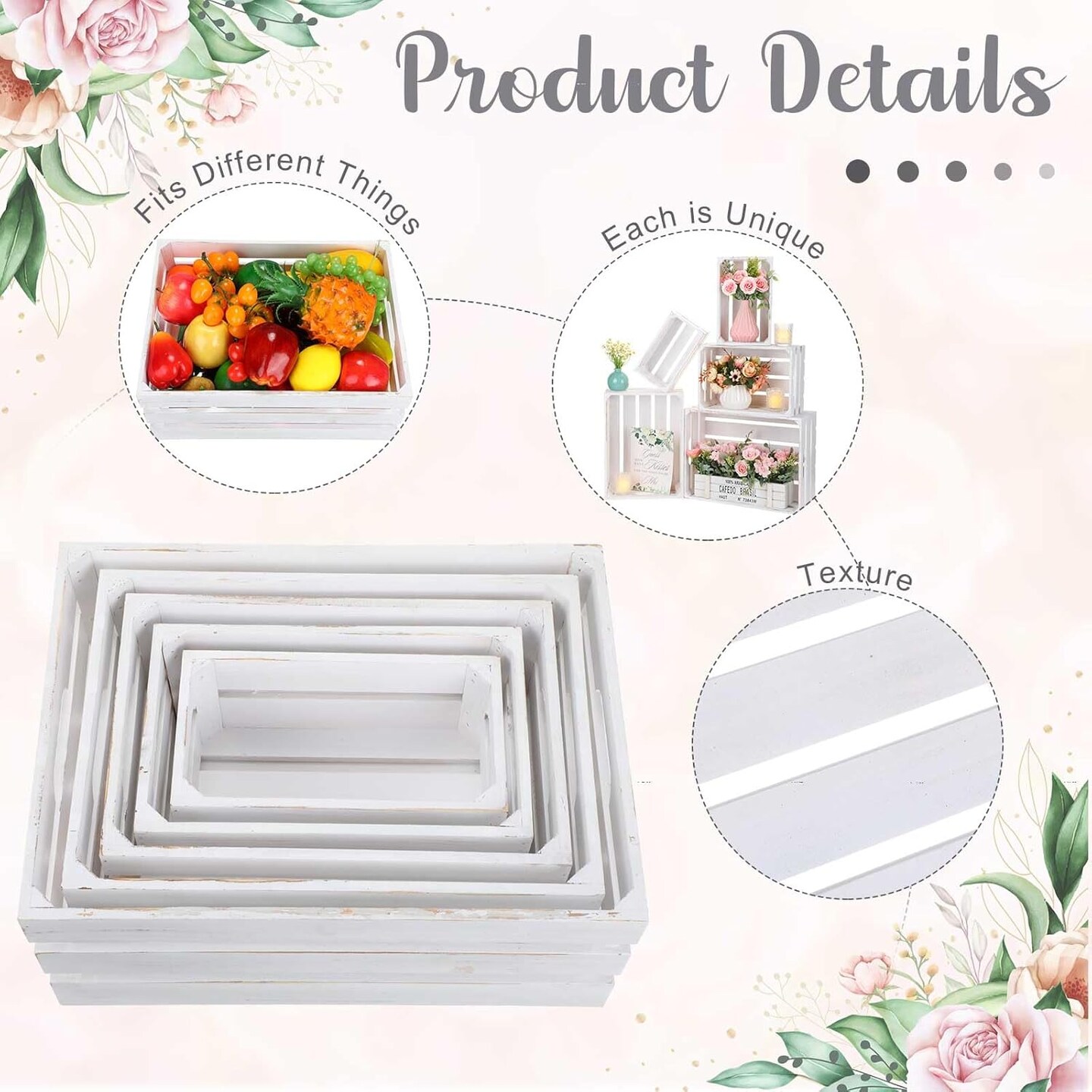 5 Pcs Decorative Nesting Wooden Crates for Storage Display 5 Size Large Small Rustic Wood Decorative Storage Crates with Handle Farmhouse Crate Box Container Made from Pine(Painted White)