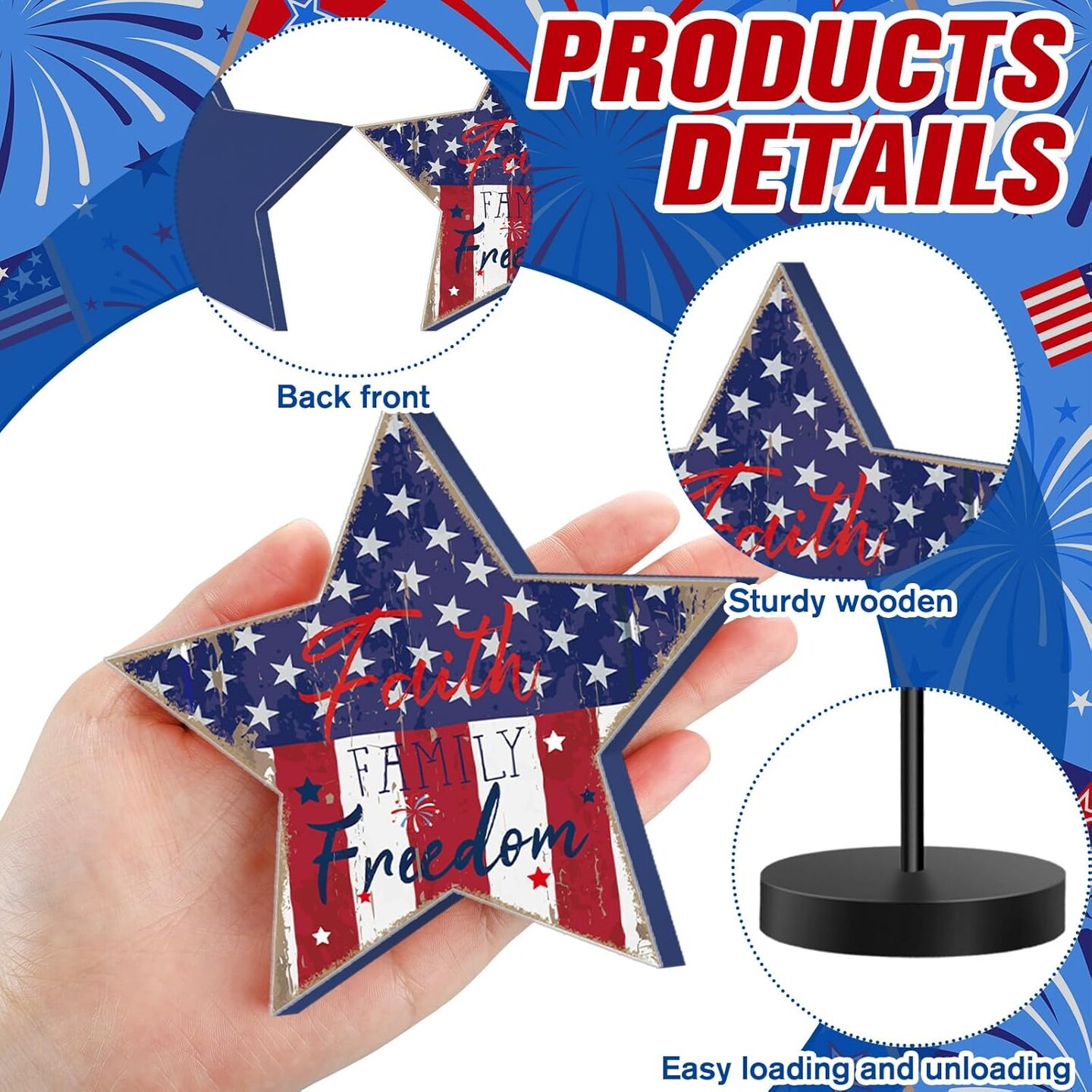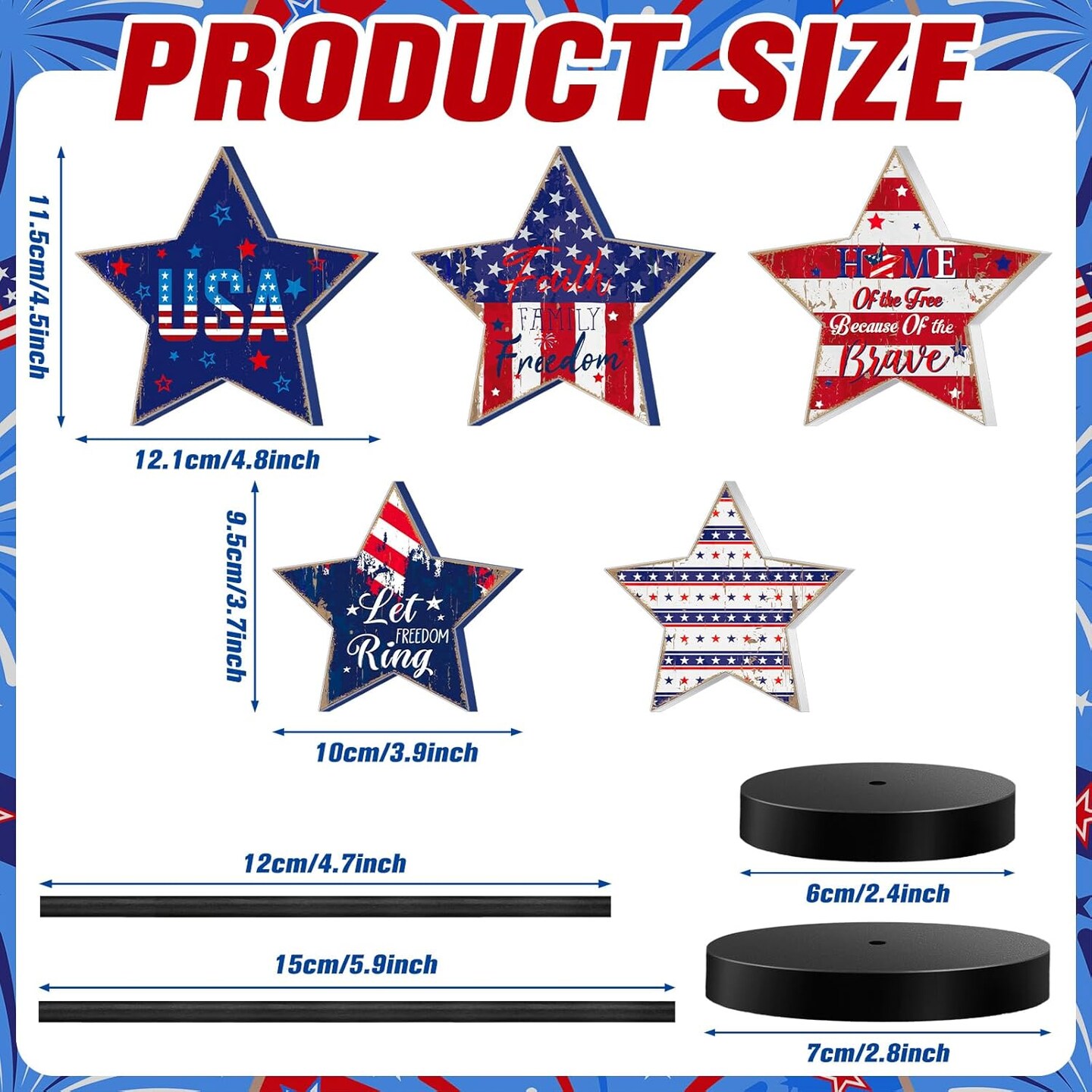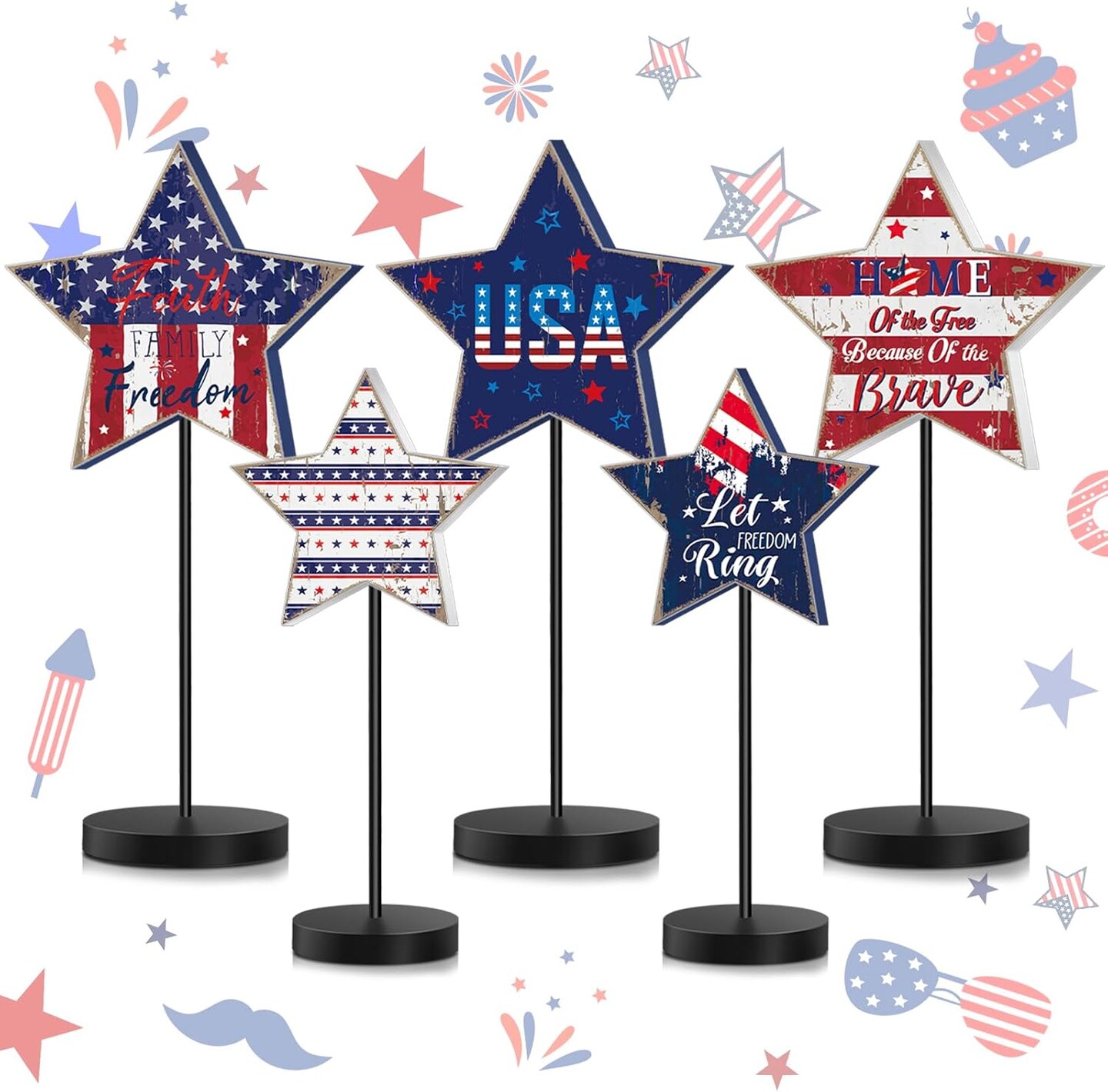 5 Pcs Patriotic 4th of July Standing Star Block Set Wooden Star Table Decoration Red White Blue Independence Day Wood Patriotic Decor Memorial Day Centerpieces for American Festival(Retro)