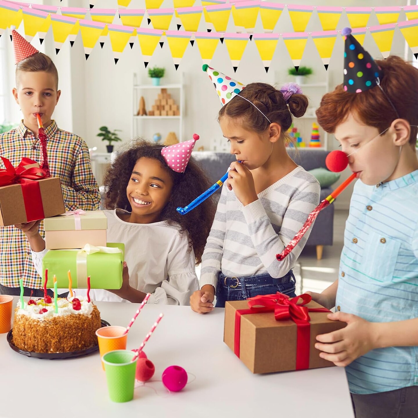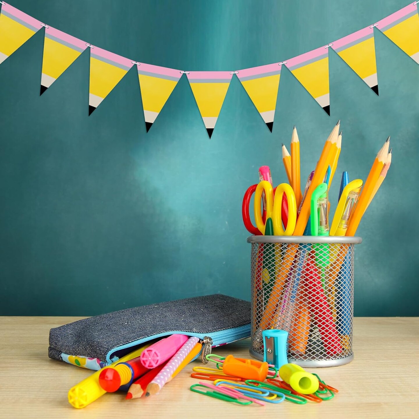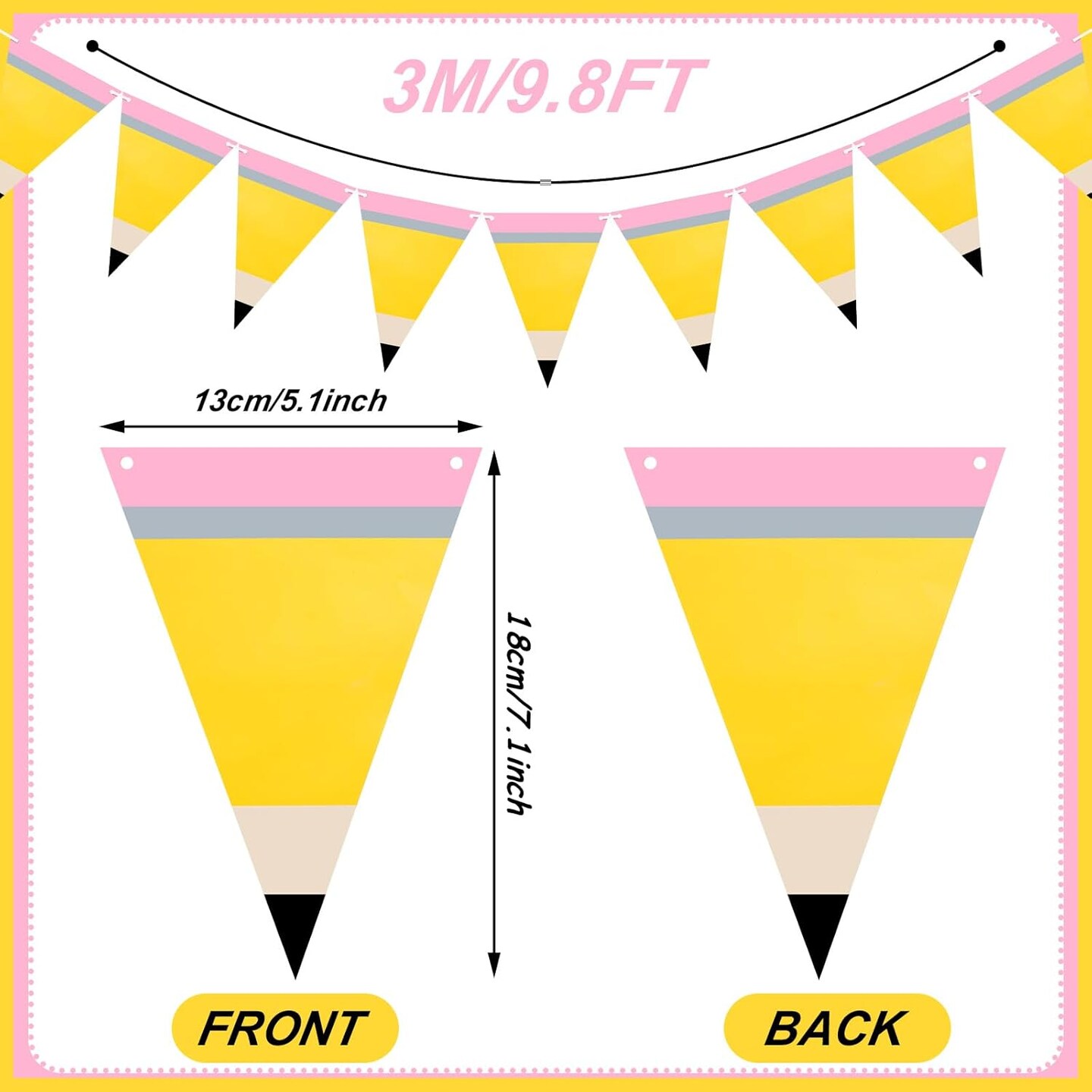 5 Pcs Pencil Shaped Paper Pennant Banners Back to School Classroom Decorations
