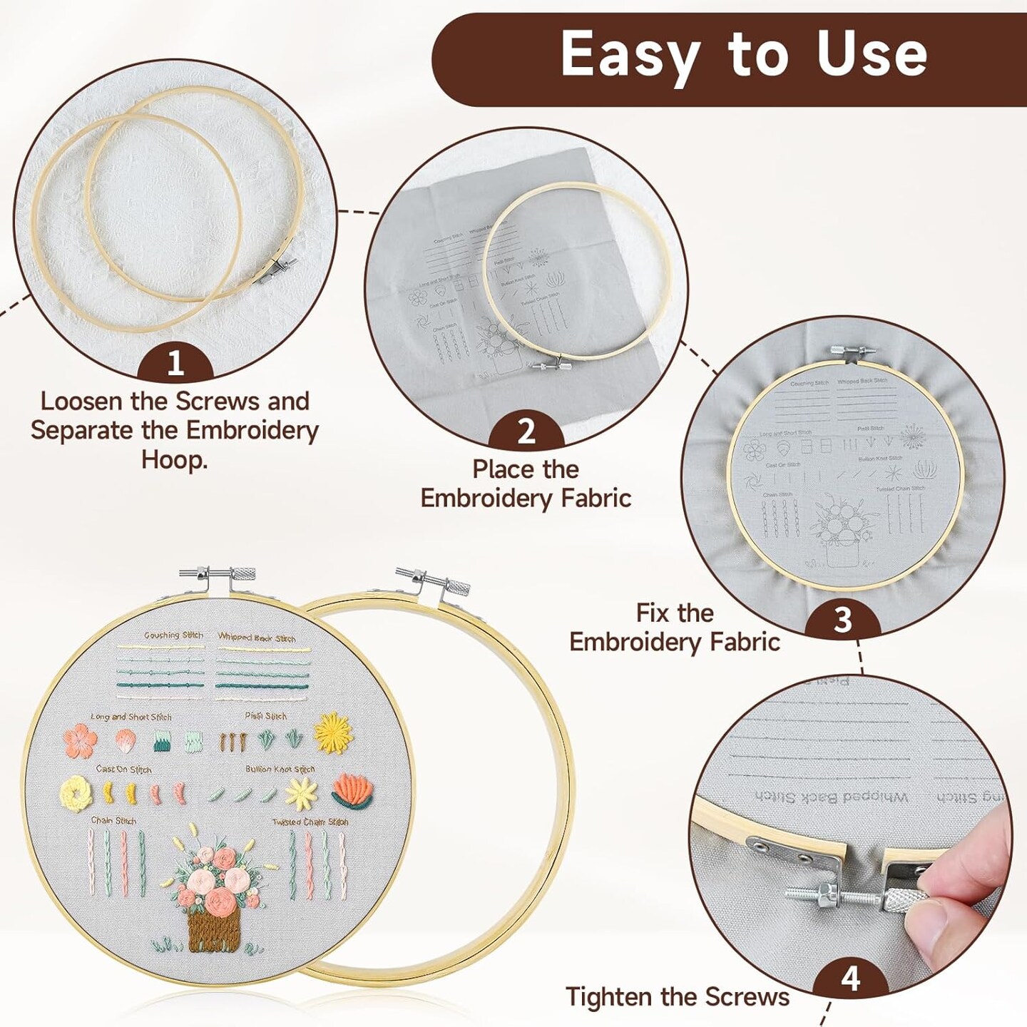 5 Pieces Bamboo Embroidery Hoops,(4”, 6”, 8”, 9”, 10”) Set for Embroidery
