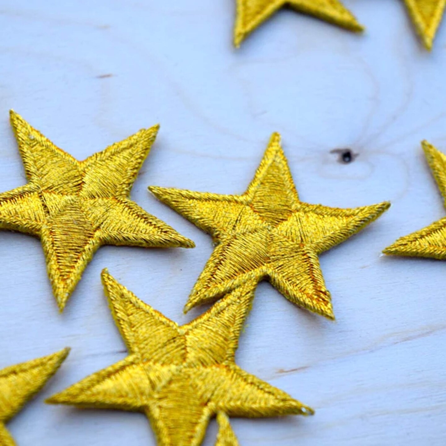 5 Pieces Medium Gold Star Embroidery Patches with Metallic Thread Iron On 1.5" Craft