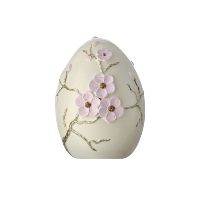 5" Resin Cherry Blossom Egg | Elegant Ivory & Pink Easter Decoration-MT26233