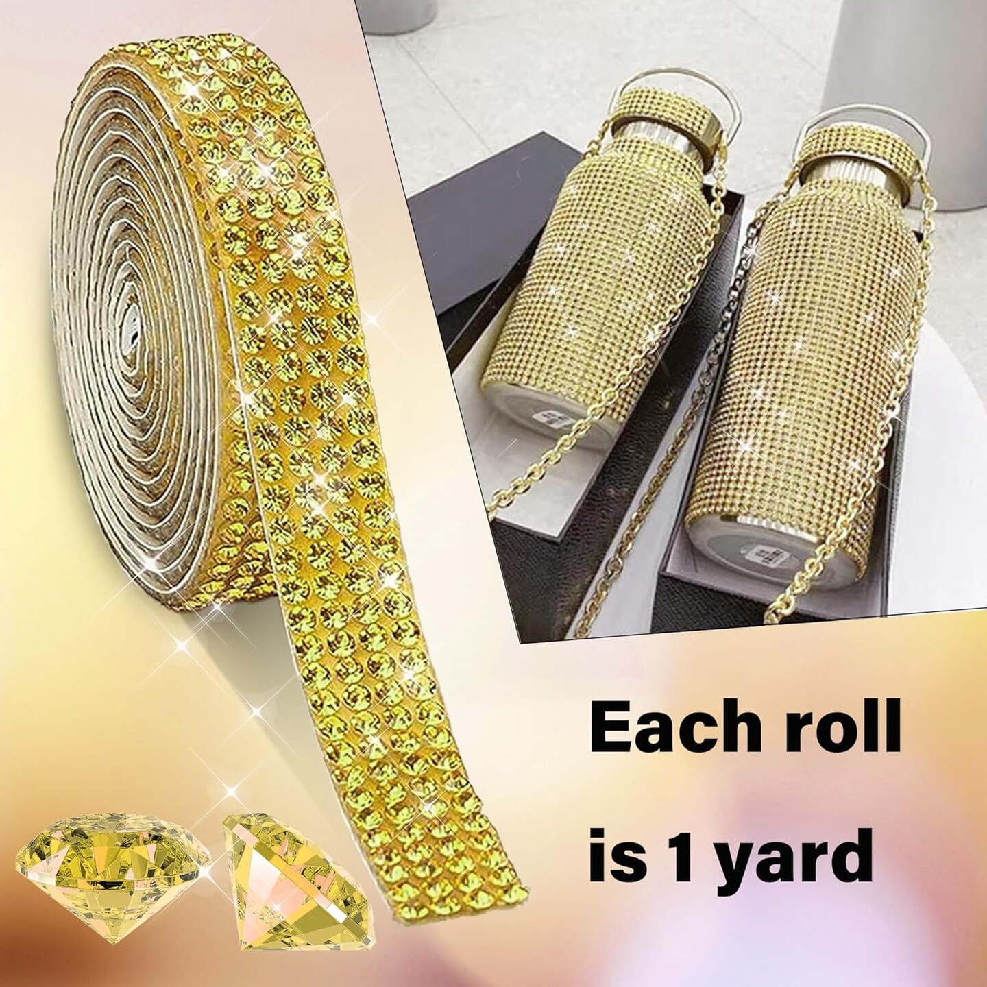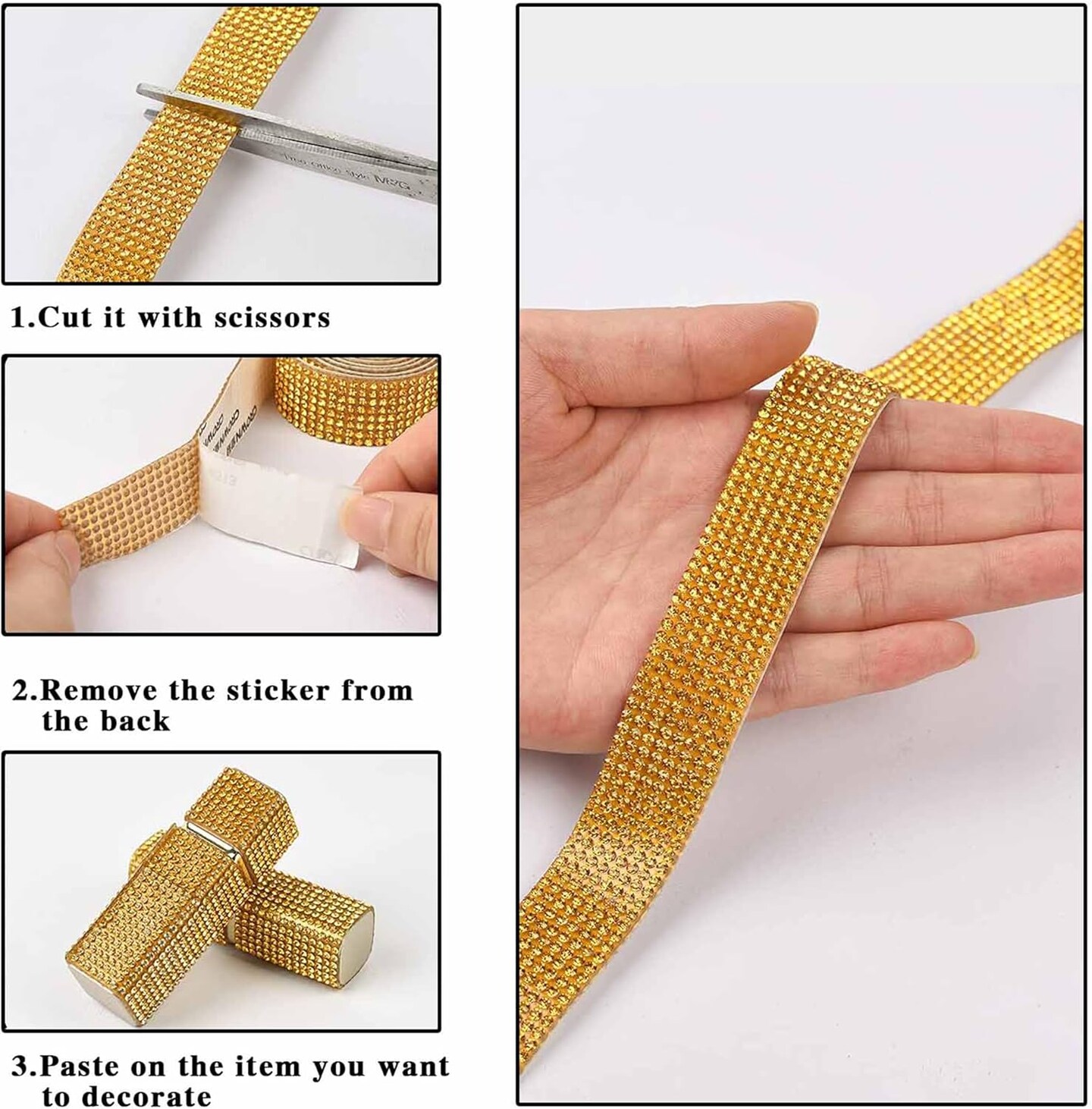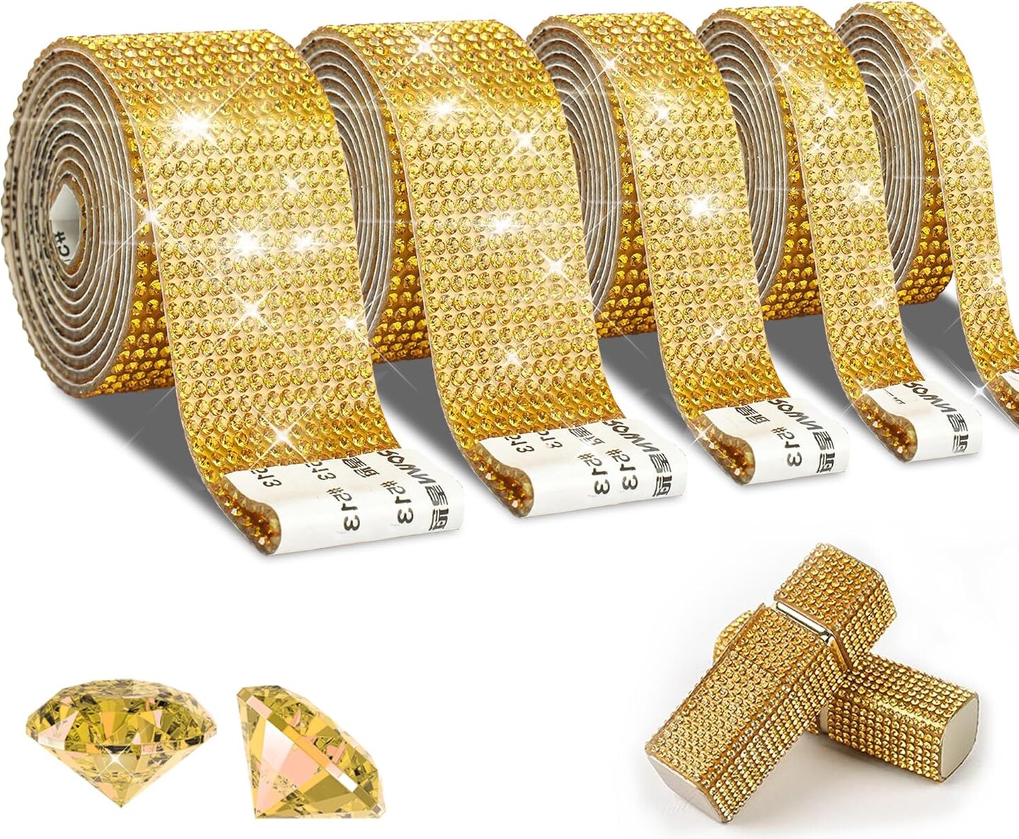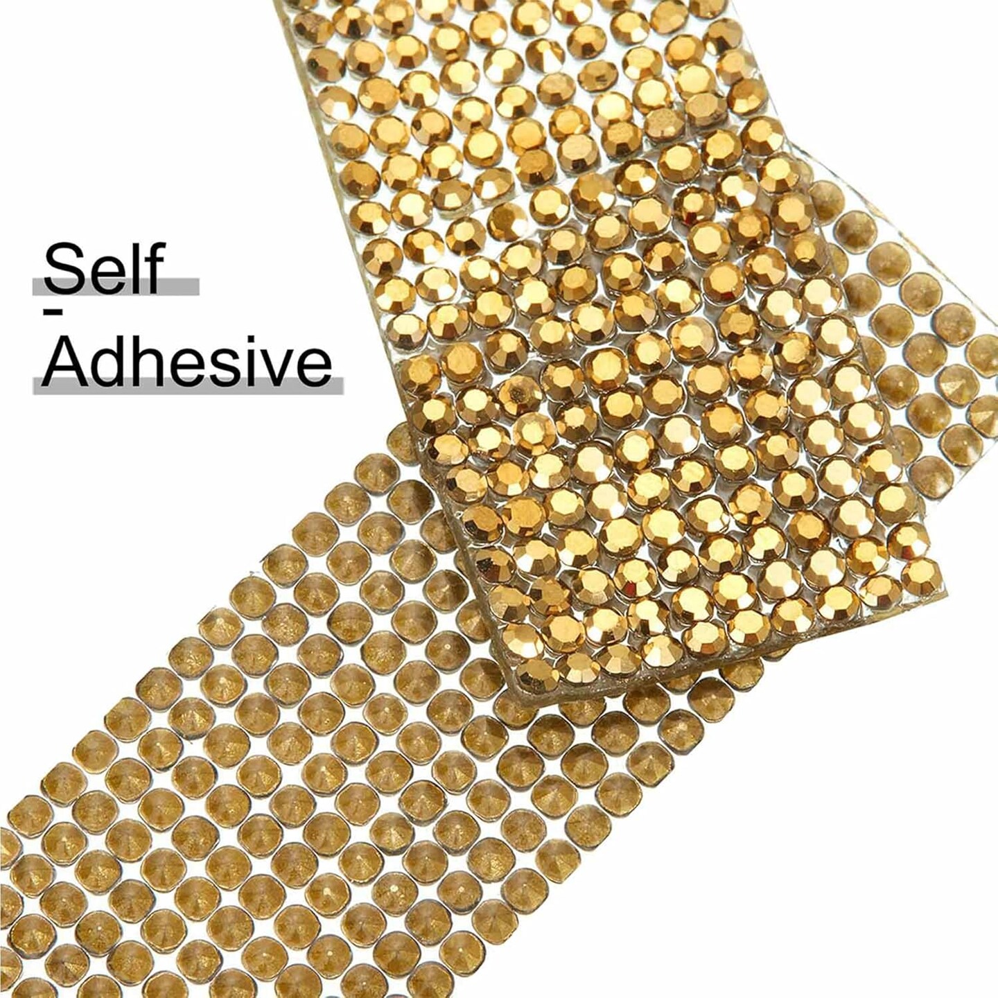 5 Rolls Self Adhesive Crystal Rhinestone Ribbon (Gold)