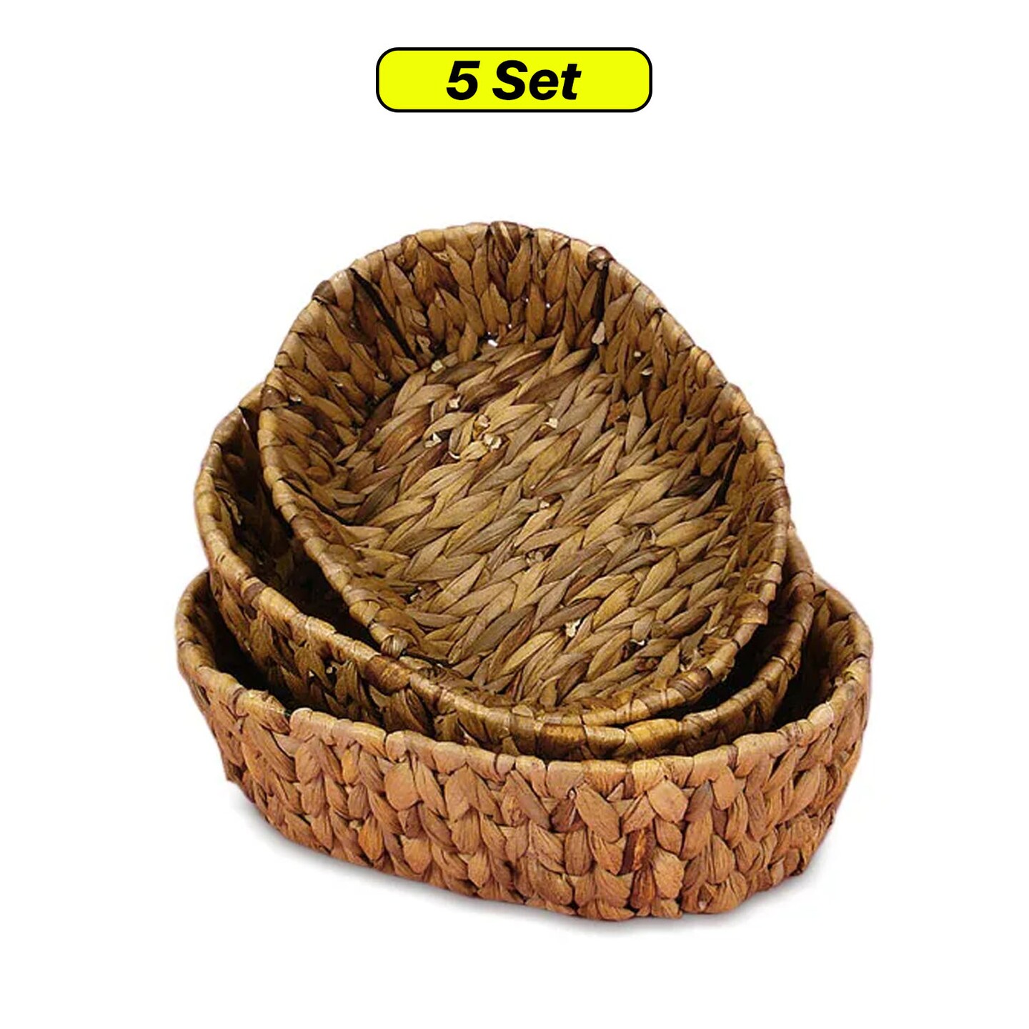 5 Set Natural Rush Oval Basket Tray