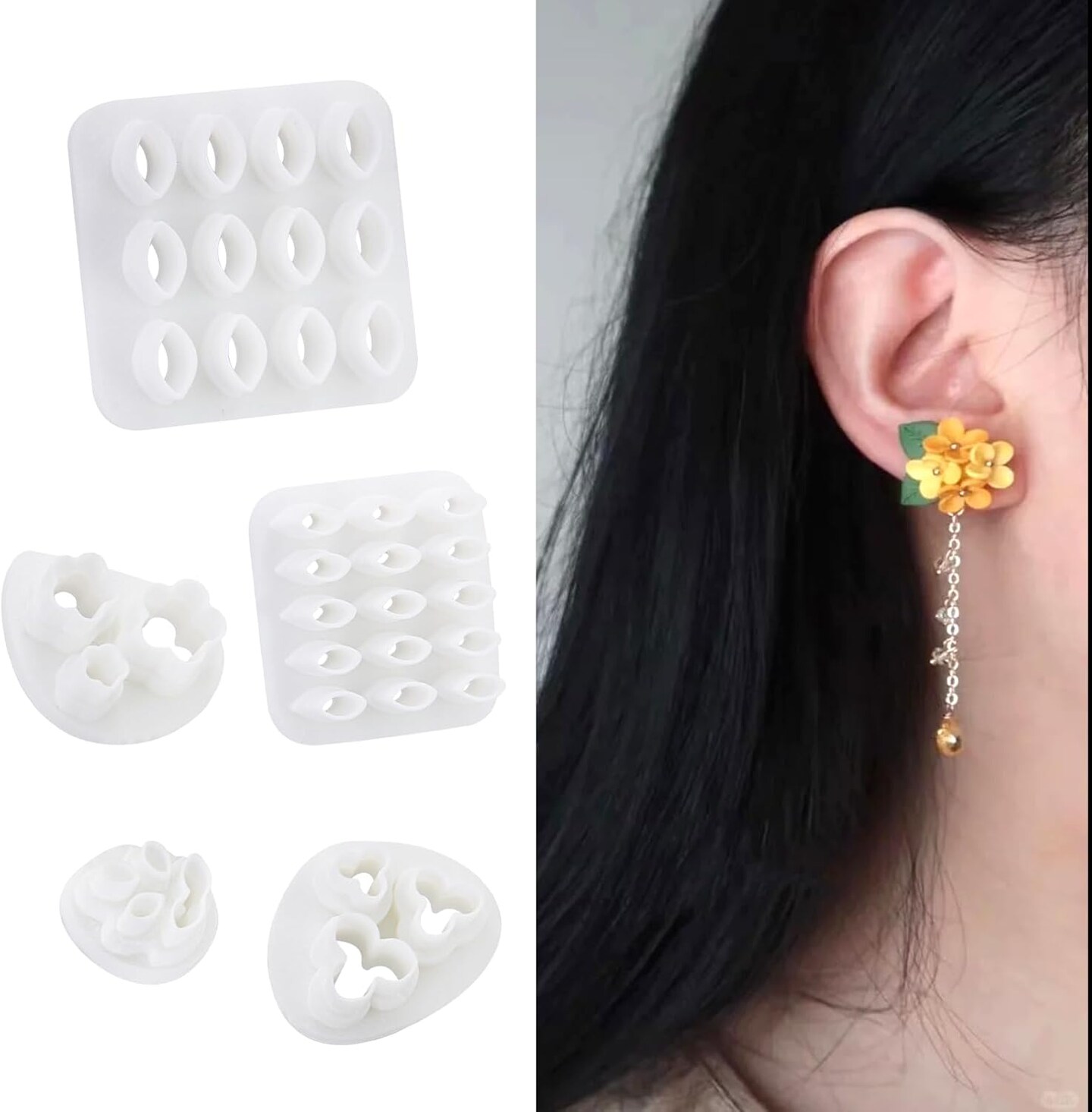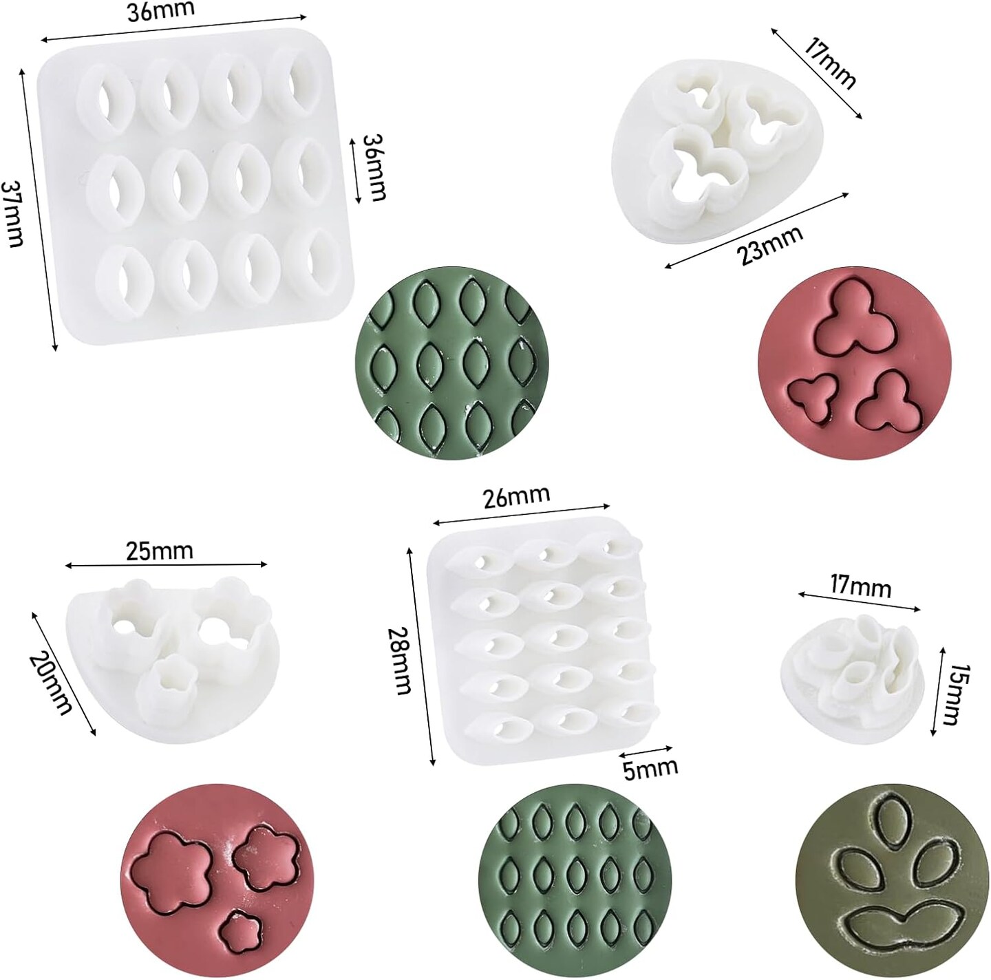 5 Shapes Leaf Clay Cutters Set with Press Molds, 3D Printed