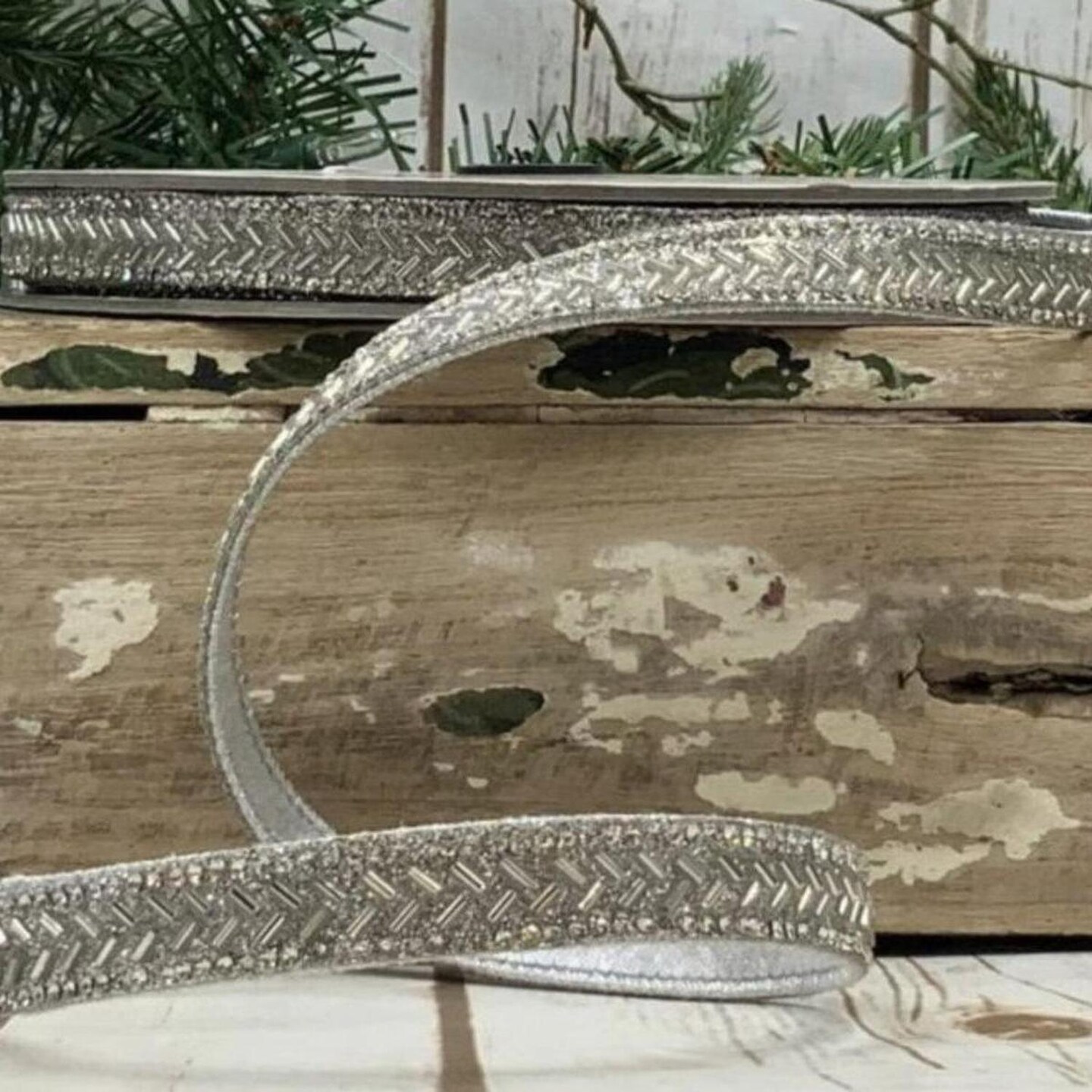 .5" Silver Bead Chevron Ribbon