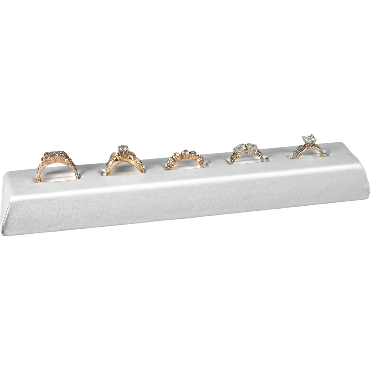 5 Slot White Leather Ring Display Jewelry Case Stand